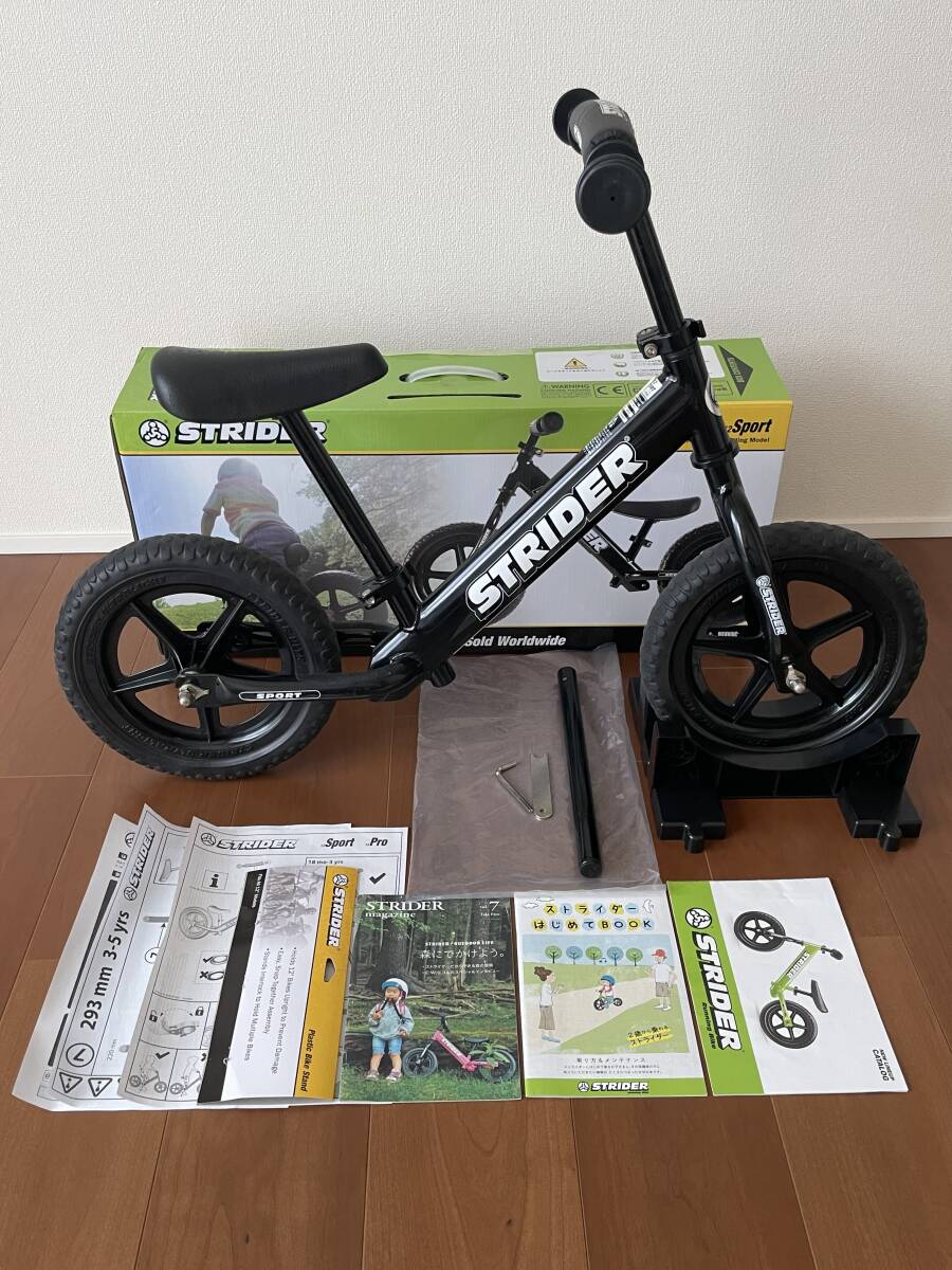 美品 ストライダー STRIDER ブラック 正規品 別売スタンド付き 箱 付属品多数あり ランニングバイク