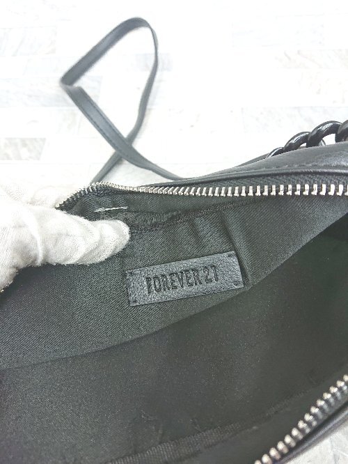 ◇ FOREVER 21 フォーエバー ヘリンボーン柄 ショルダー ハンド バッグ ブラック レディース P