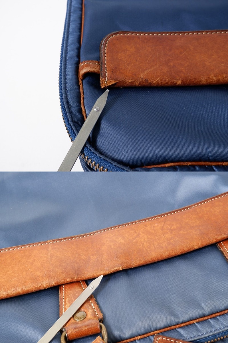 B:やや傷や汚れあり (特記事項: レザーハンドルに黒ズミ、表面ナイロンとレザーに多少のスレ汚れ使用感ございます。)