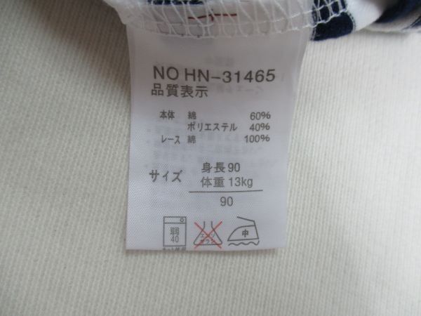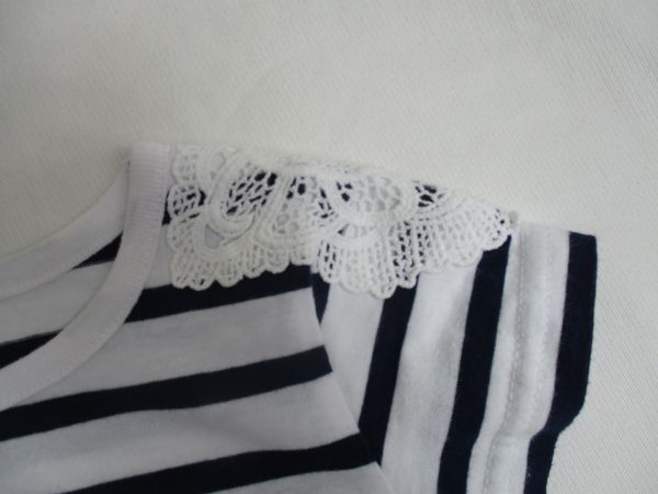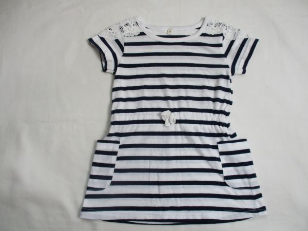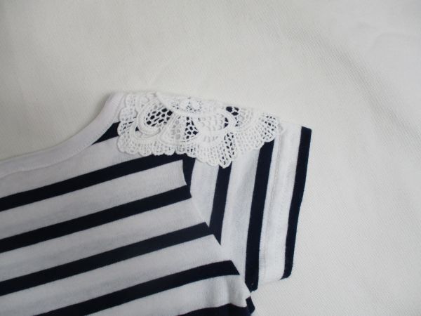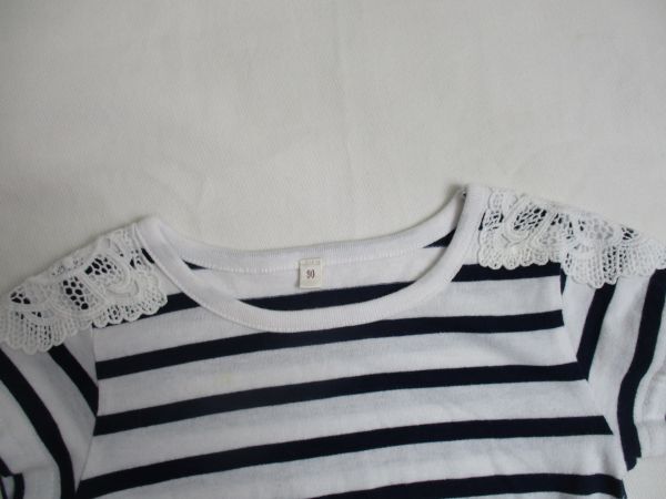 BF801【(株)西松屋チェーン】ボーダー 肩レース 半袖 ワンピース 訳有 女児 白・濃青 90 | |