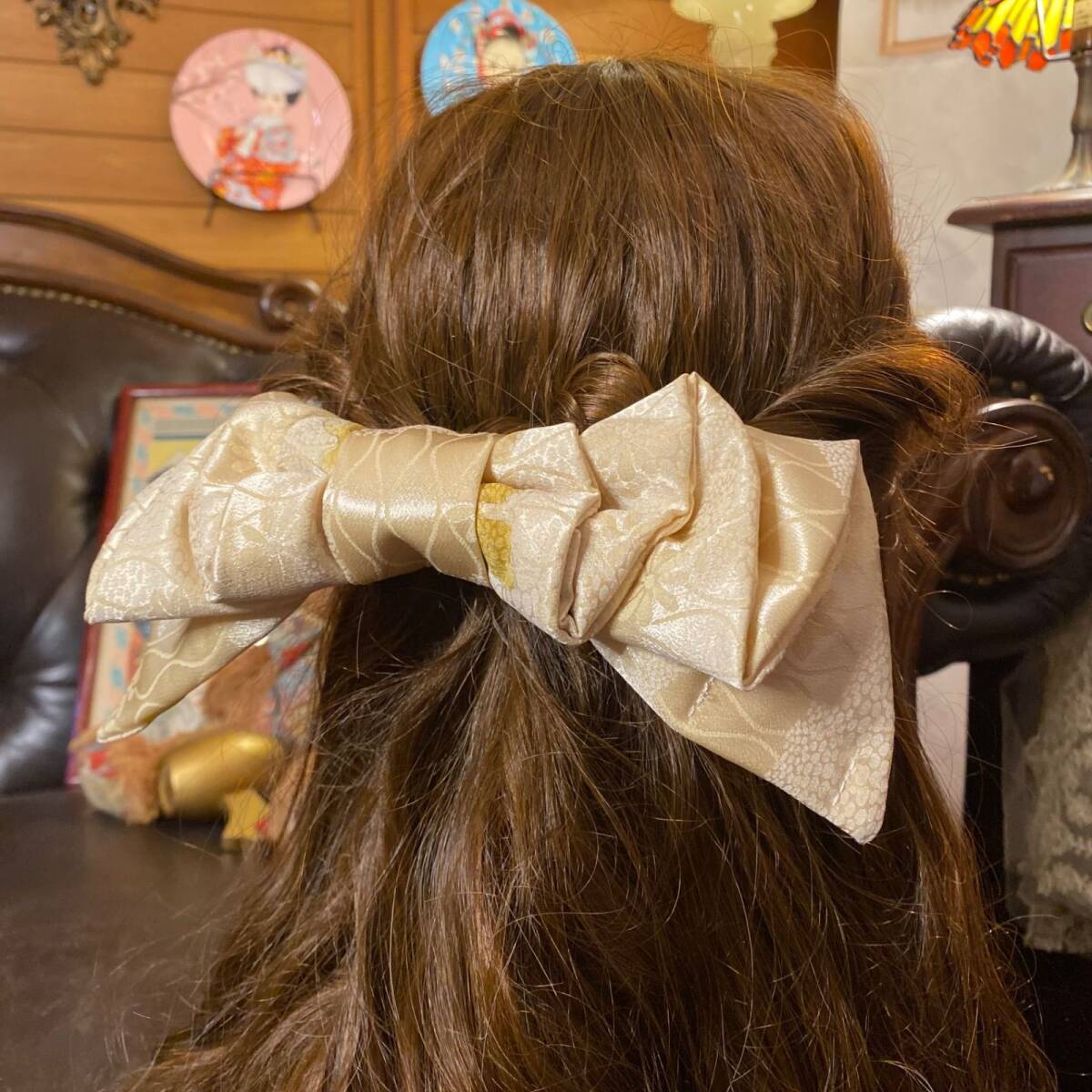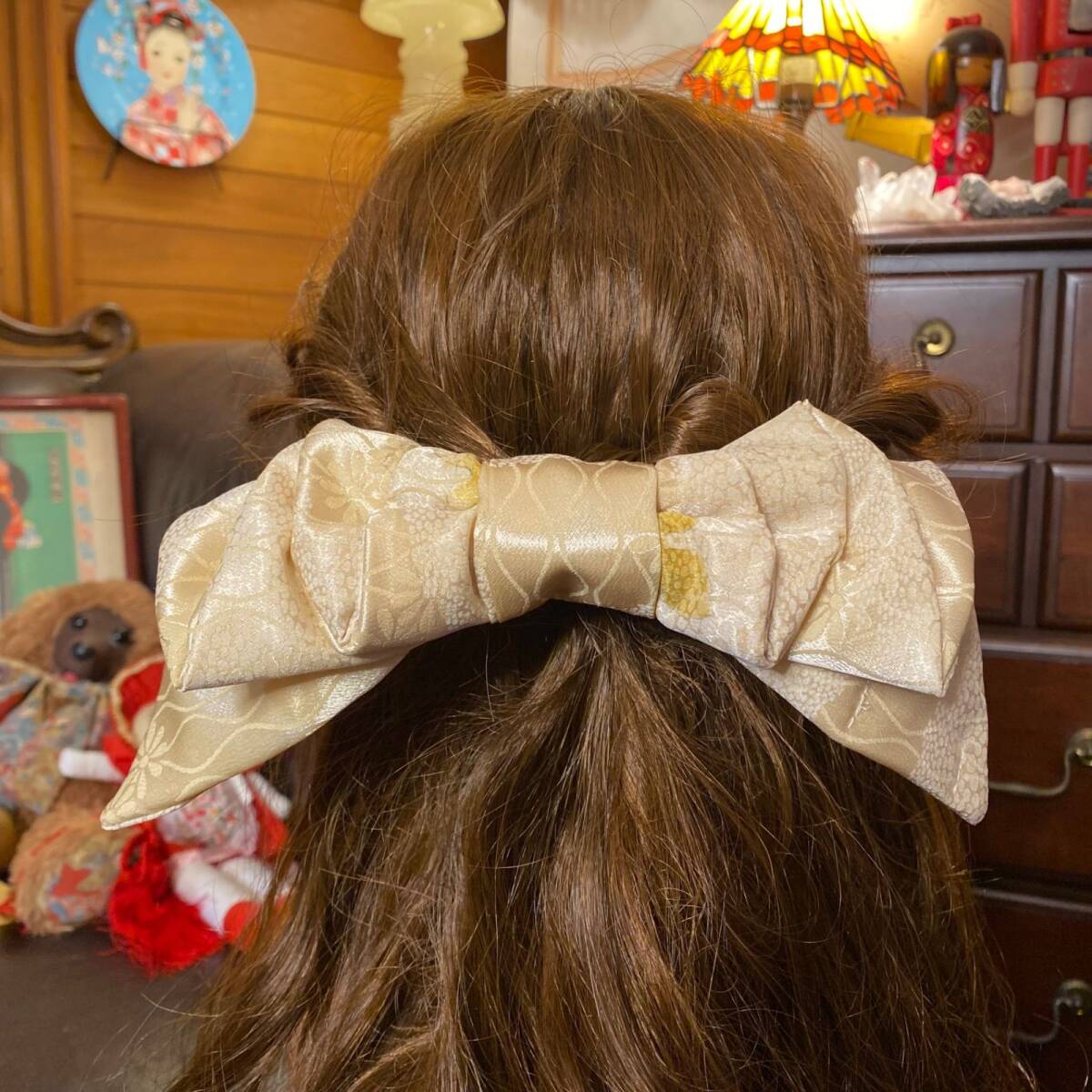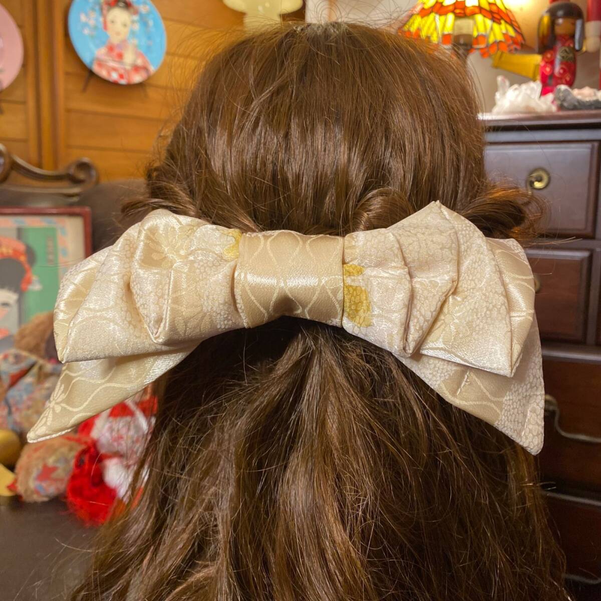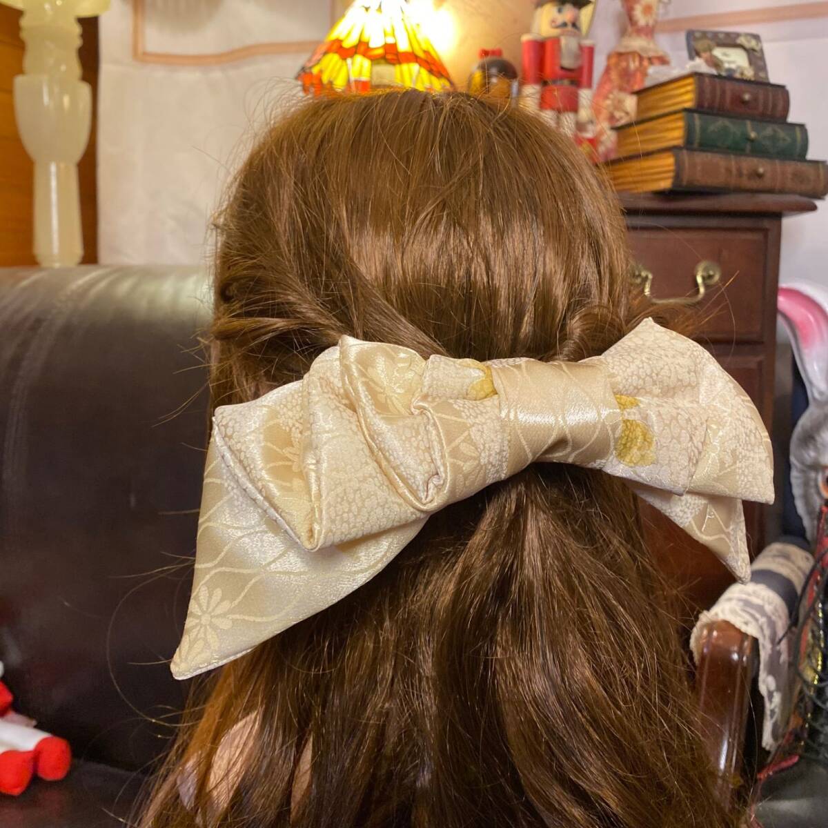 【 着物リメイク ハンドメイド ハイカラおりぼん ヘッドドレス ヘアコーム ヘアアクセサリー 和洋折衷 レトロ 和ロリータ モダン 素敵な和柄 R-26 】