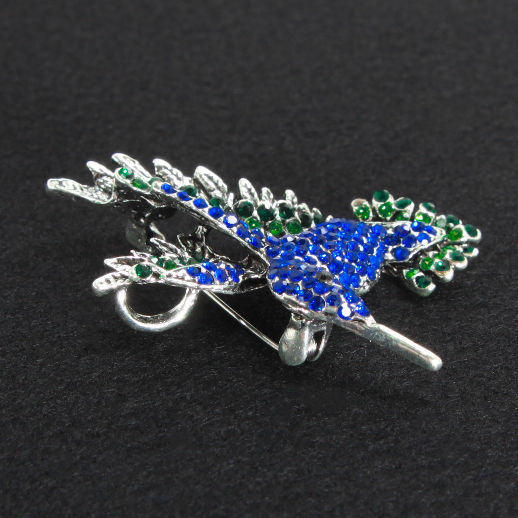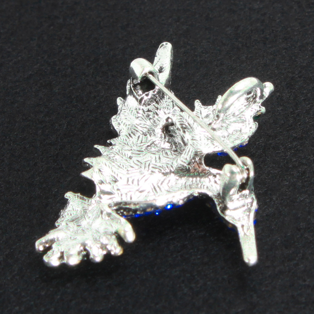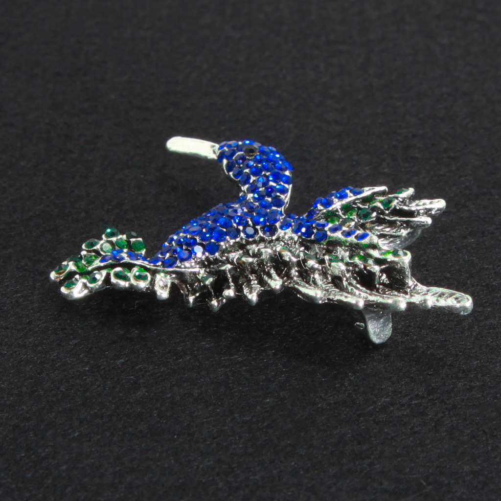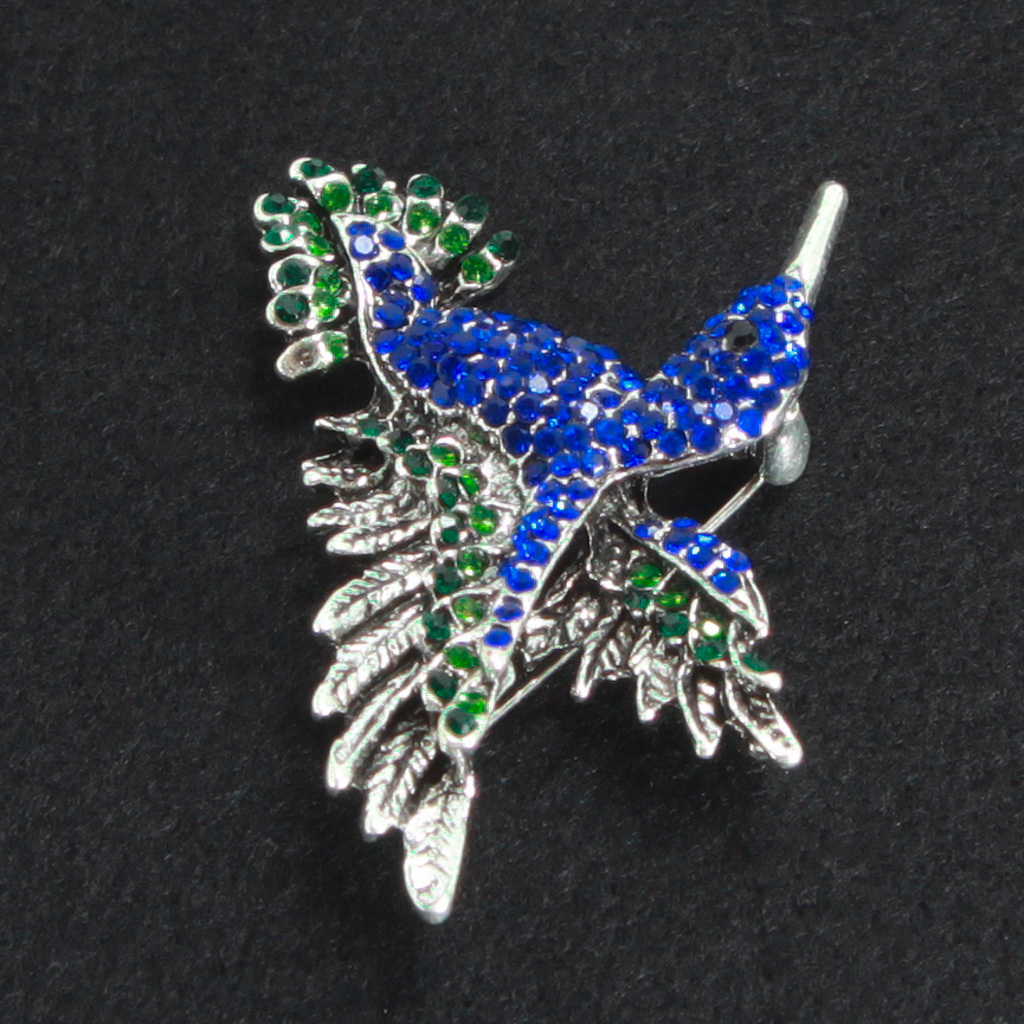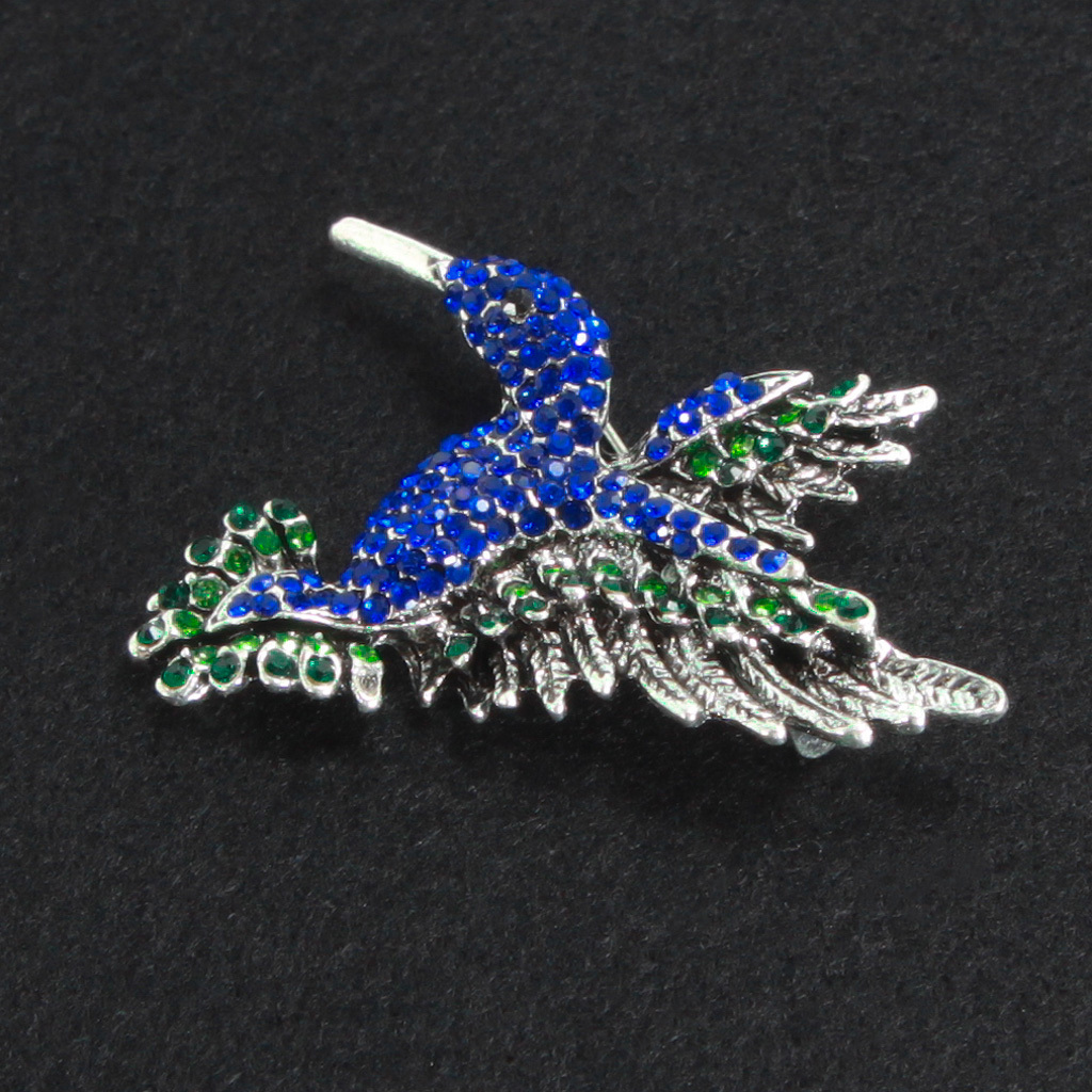 藍色のハチドリのようなブローチ 藍色とグリーンを中心としたラインストーン 藍色の鳥