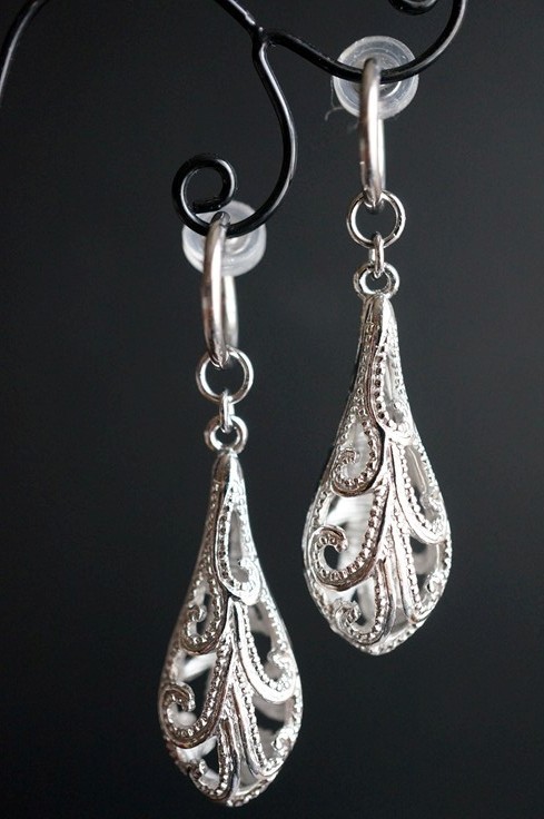 イヤリング 282 透かしメタルのフープイヤリング サージカルステンレス 金属アレルギー対応金具使用