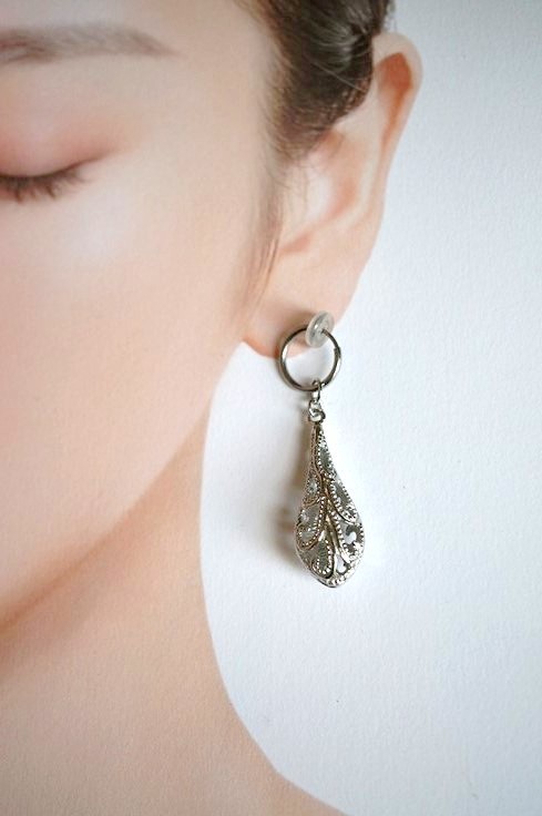 ピアス穴が無い方でもフープピアスを付けているように見せられるイヤリングパーツです。