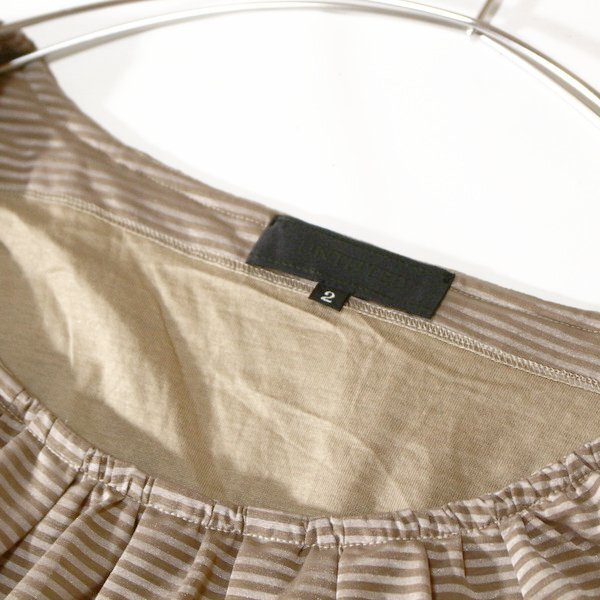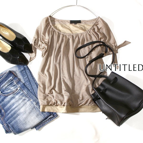 美品 UNTITLED アンタイトル 可愛いボーダー柄 袖リボン ストレッチ カットソー 2号 M 春 夏 24C07