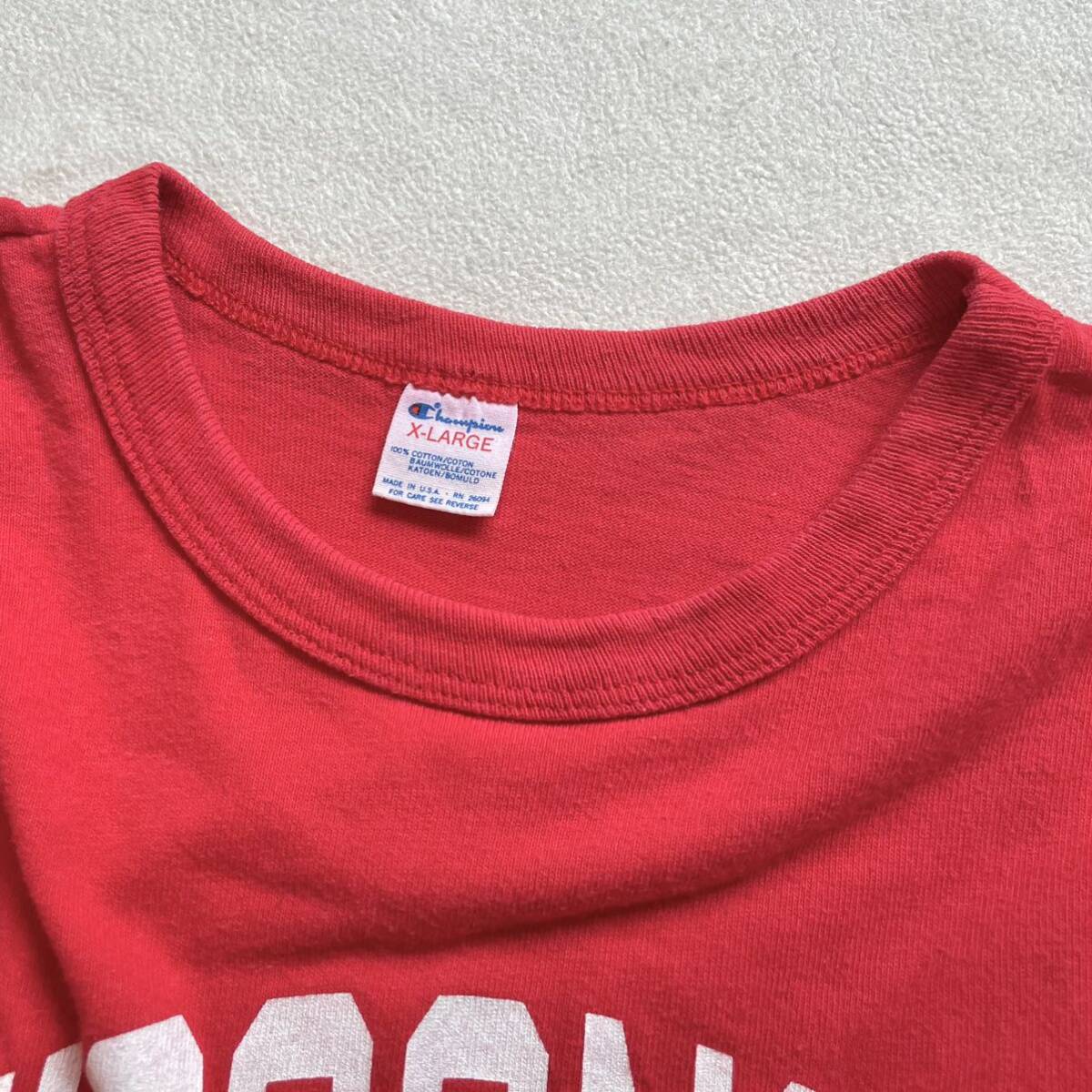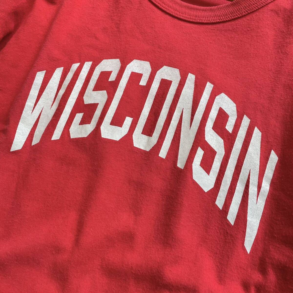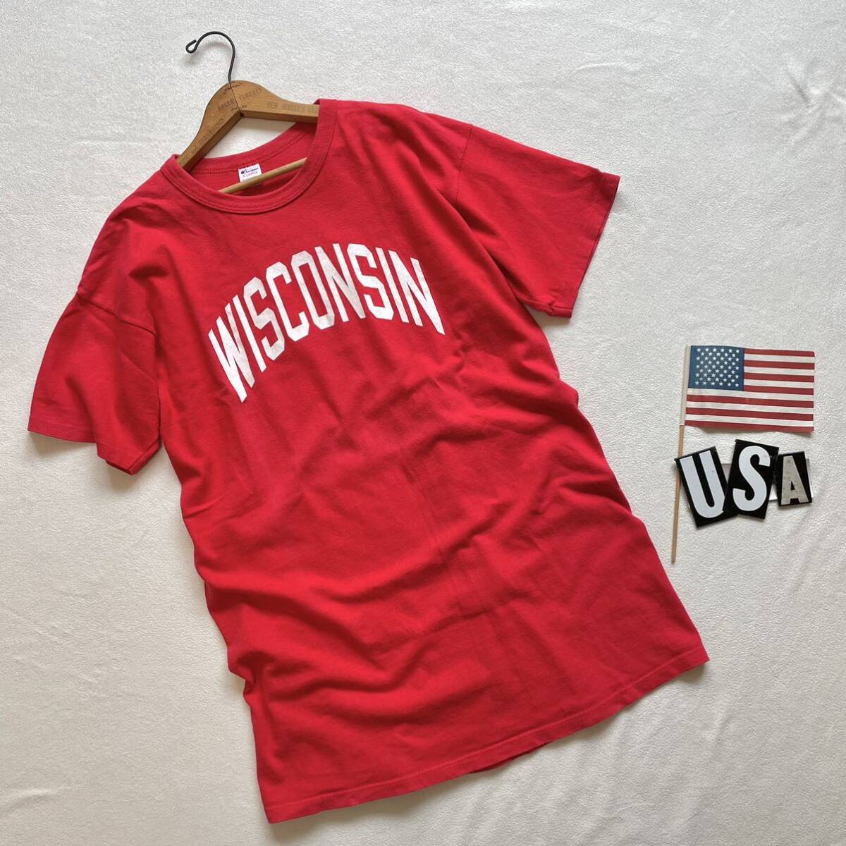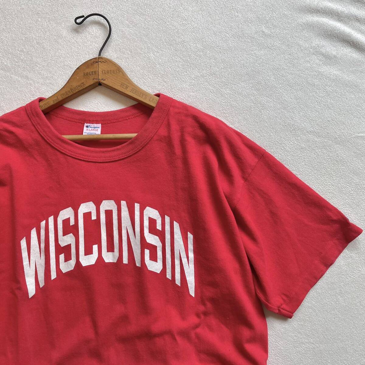 目立つダメージや汚れ無く、美品です。穴も無いと思います。意外と人気な赤でサイズXL、白プリントのウィスコンシンが良い感じです。発色の良いレッドです。