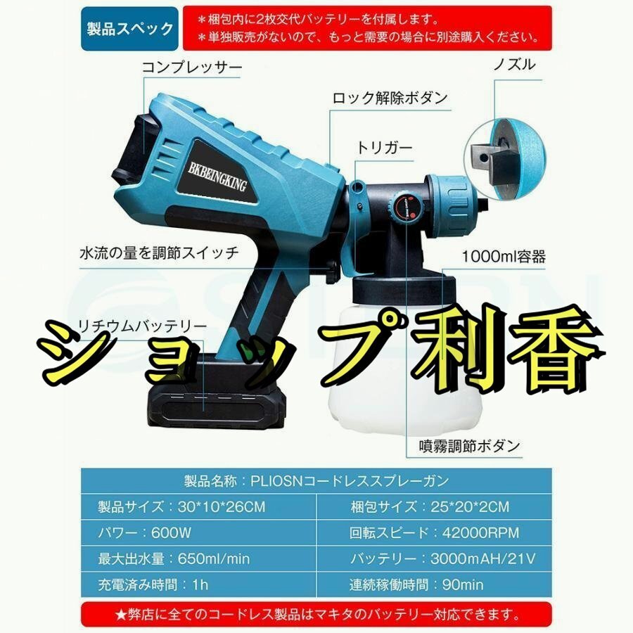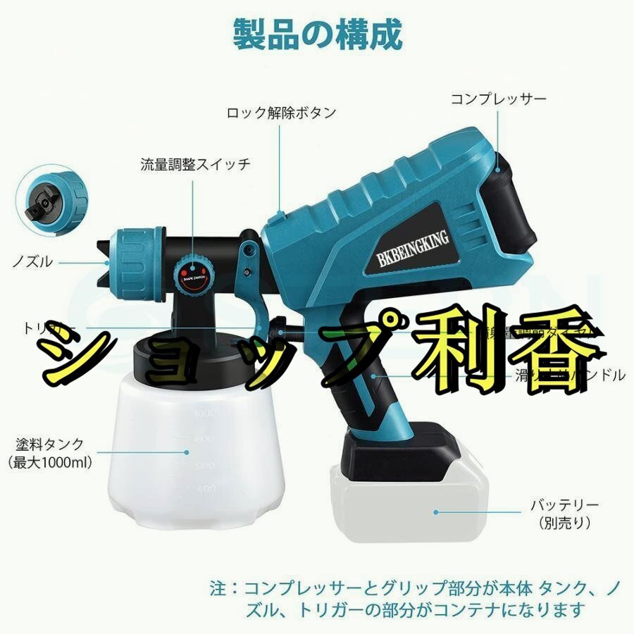 スプレーガン エアーガン 電動 マキタ互換 18V 14.4V 塗装ガン 塗料 パワースプレー バッテリー・充電器別売 18ボルト 14.4ボルト WJGJ265