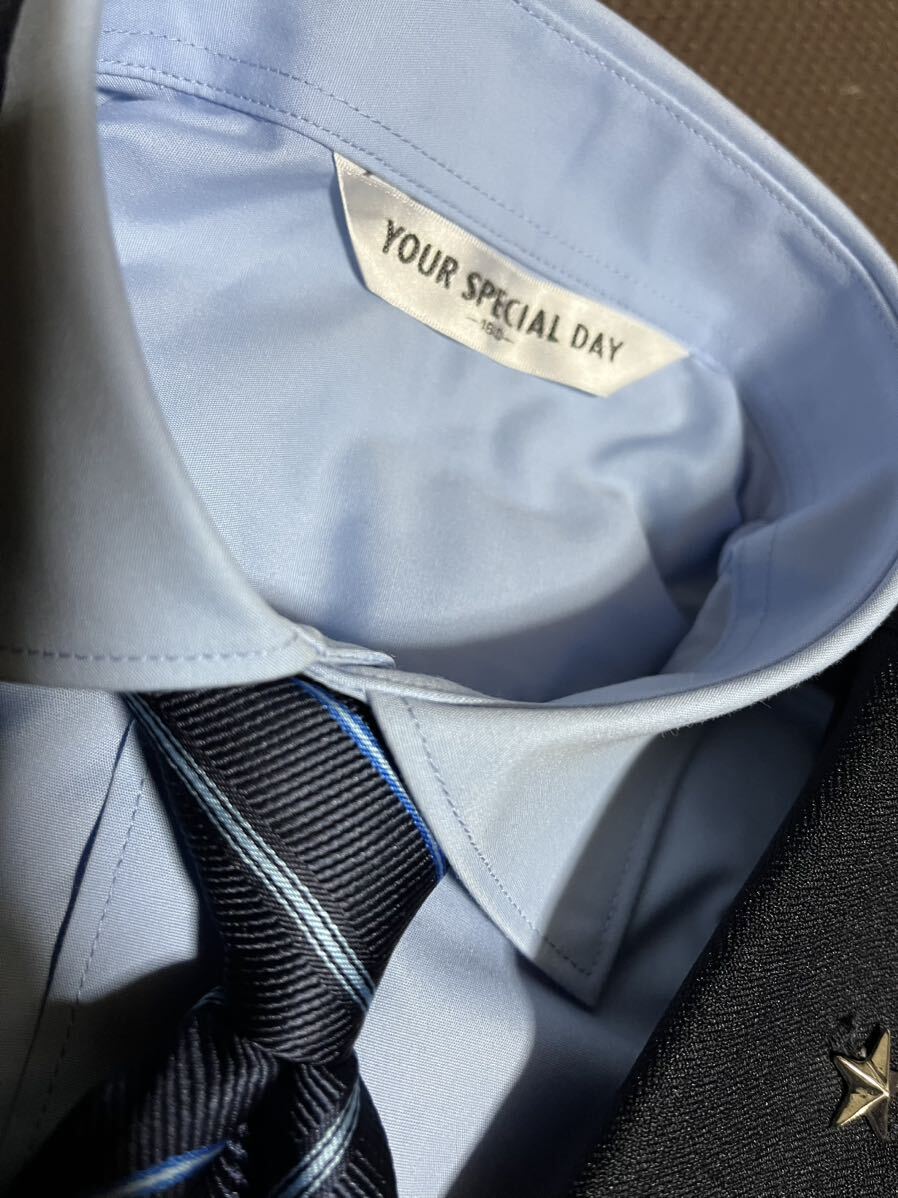 美品ピンバッチ付き濃紺ブレザー、シャツ、パンツセット