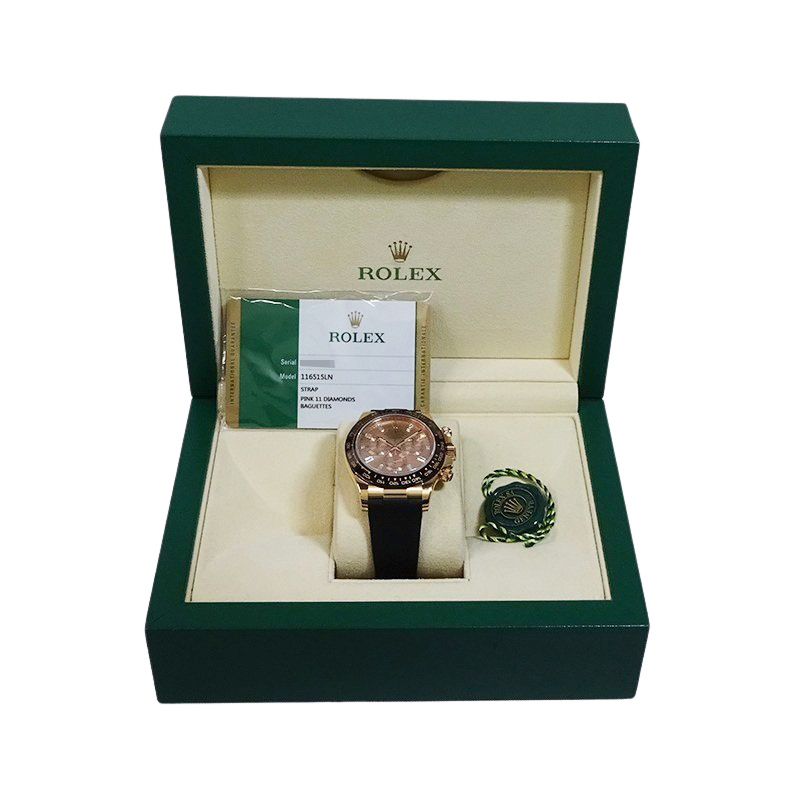 【モデル】コスモグラフデイトナ 【型番】116515LNA 【シリアル】ランダム番 【素材】エバーローズゴールド 【ムーブメント】自動巻き 【文字盤】ローズゴールド文字盤 【ケースサイズ】約40.0mm (ラグ・リューズを除く) 【ベルト】社外ラバーベルト 【腕回り】約19.0cm 【付属品】内箱・保証書(2017年)・純正レザーベルト 【コンディション】中古 【商品ID】FL-MSD-02 【状態コメント】 ケース・バックルに僅かな小傷が見受けられますが、目立つ大きな傷などはないコンディションです。 風防は、目立つ大きな傷などなく視認性に問題ありません。 【おすすめポイント】 エバーローズゴールドケースにバケットダイヤインデックスがラグジュアリー感溢れる1本です。 |