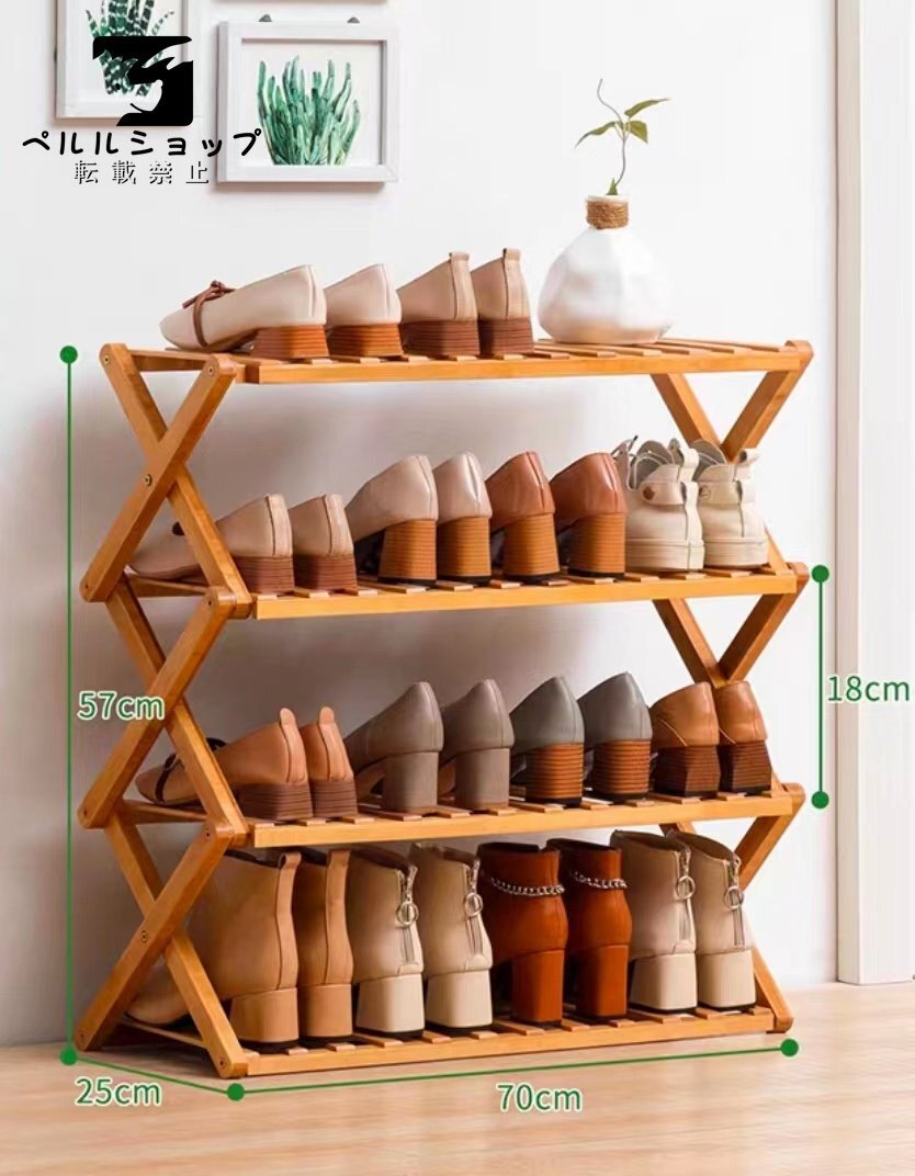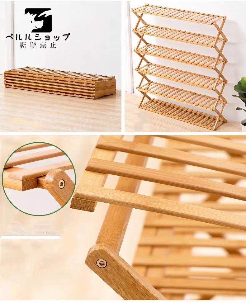 4階 大容量 下駄箱 折り畳み 竹 シューズボックス 収納 棚 シューズラック シューズ 玄関収納
