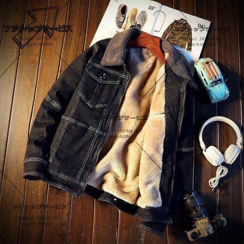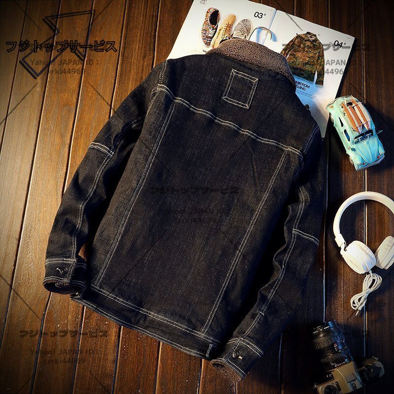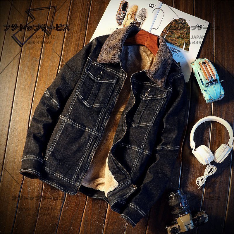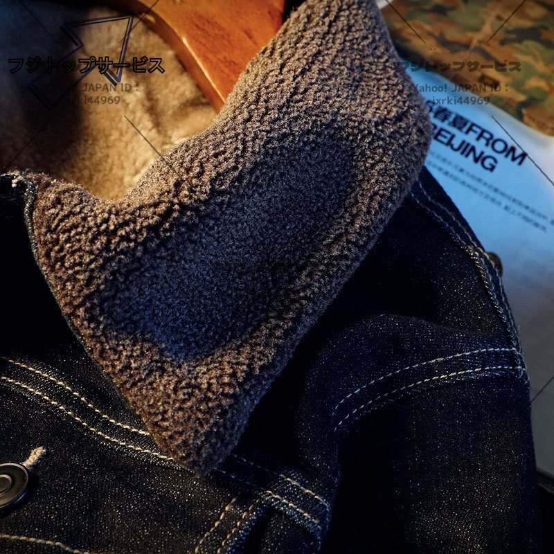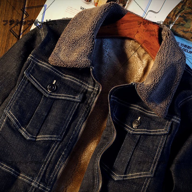 デニム ジャケット スタンドカラー 秋冬アウタ 防寒トップス 裏起毛 厚手 人気 ジャンパー ブルゾン XL