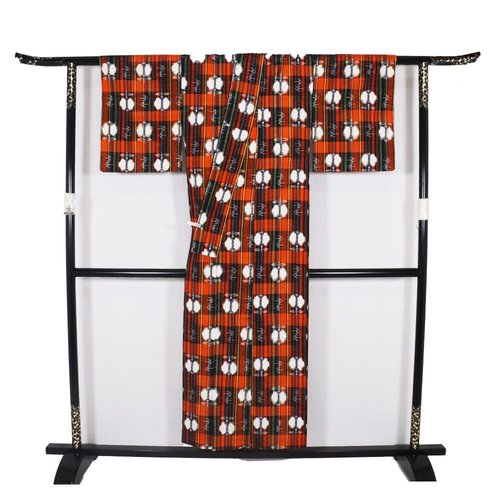 | 単衣 手織り紬 赤黒地 遠州椿 157 広襟 7号 | |
