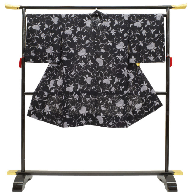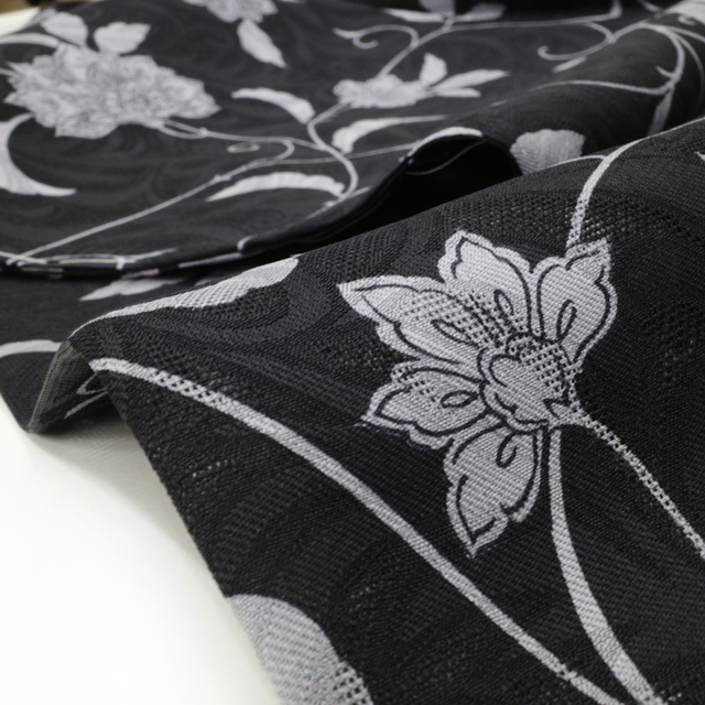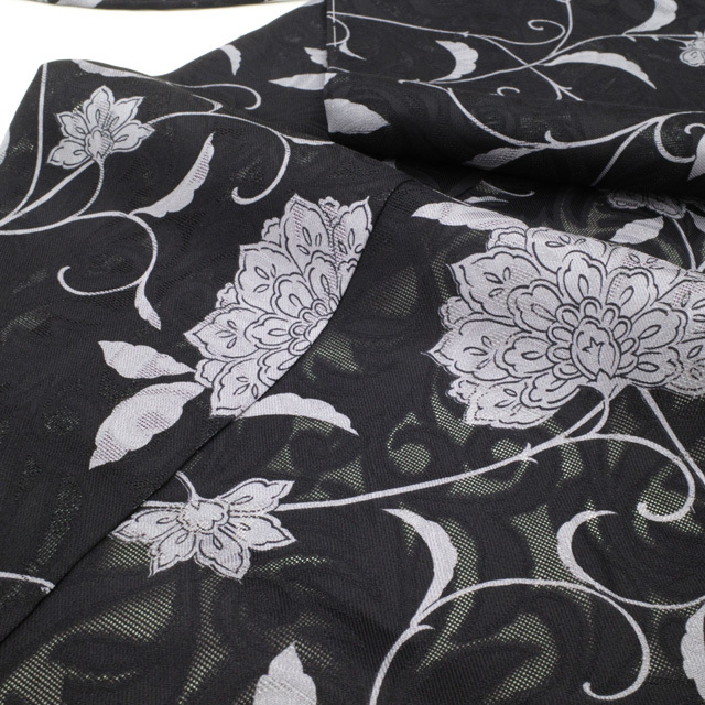 黒地にライトグレーでお洒落な花唐草が染められたとっても素敵なデザインです。