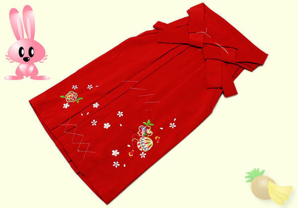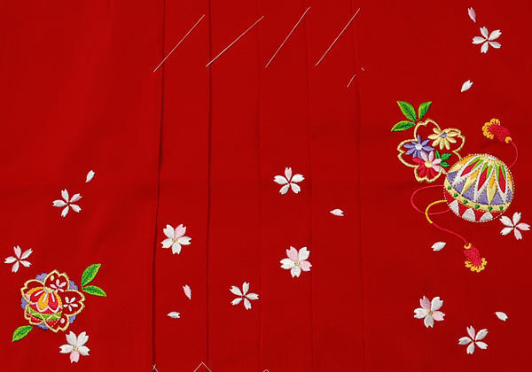 京有栖☆七五三☆七歳用刺繍入り無地袴☆赤色☆桜/鞠☆