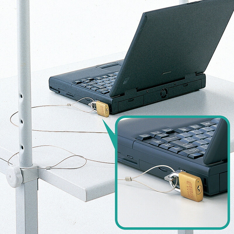 セキュリティスロットを使って盗難から守るノートパソコン、デスクトップパソコンなどに最適なタイプ。