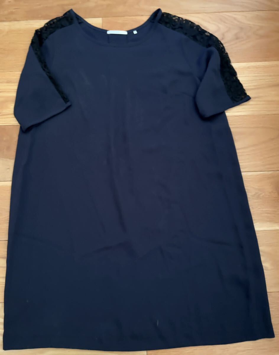 ・ドゥクラッセ Do CLASSE の素敵なストレッチワンピース(チュニック、カットソー、ドレス)です。1回着用のみのお品。 ・お色は深いネイビーブラック。適度に張りがありながらもしなやかな上質ポンチ素材で肉感を拾わず、上品です。肩のブラックレース生地切り替えデザインがポイント。長めの半袖でしっかり二の腕カバー。 ・ストンとした控えめAラインシルエットでスッキリ綺麗に着ていただけます。バックはセンターボックスタック入りで動きやすさもあり。肌触りソフトで抜群です。シンプルな飽きのこない定番デザイン。動きやすく着心地満点♪ 大人っぽいカラーで甘くなりすぎません。ストンとしたラインで着やせ効果あり。お手持ちのベルトなどでウエストマークをしても楽しめますね。フォーマルにもカジュアルにも使えそうです。 ・一枚や重ね着で、着回し次第でオールシーズン楽しめます。しわにもなりにくく、軽量でご旅行や出張にも最適です。 ・大変人気だった完売モデルですので、ファンの方、お探しだった方もこの機会に是非どうぞ♪ ・他にもレディスファッション出品中です。是非ご覧くださいませ。 サイズ:11号(肩幅39、身幅53cm、袖丈30cm、着丈87cm 素人採寸ですので誤差はご容赦ください) 素材:ポリエステル100% レース部分:ナイロン ☆基本的にユーズドですので、その他見逃し、細かい点など気になるような神経質な方は入札をお控えくださいませ。ノークレーム・ノーリターンでお願い致します。その代わり商品についてのご質問はどんどんお問い合わせ下さい。 ★定形外の発送は週2回程度で、少々お時間をいただきます。ご了承いただける方のみご選択ください。 |