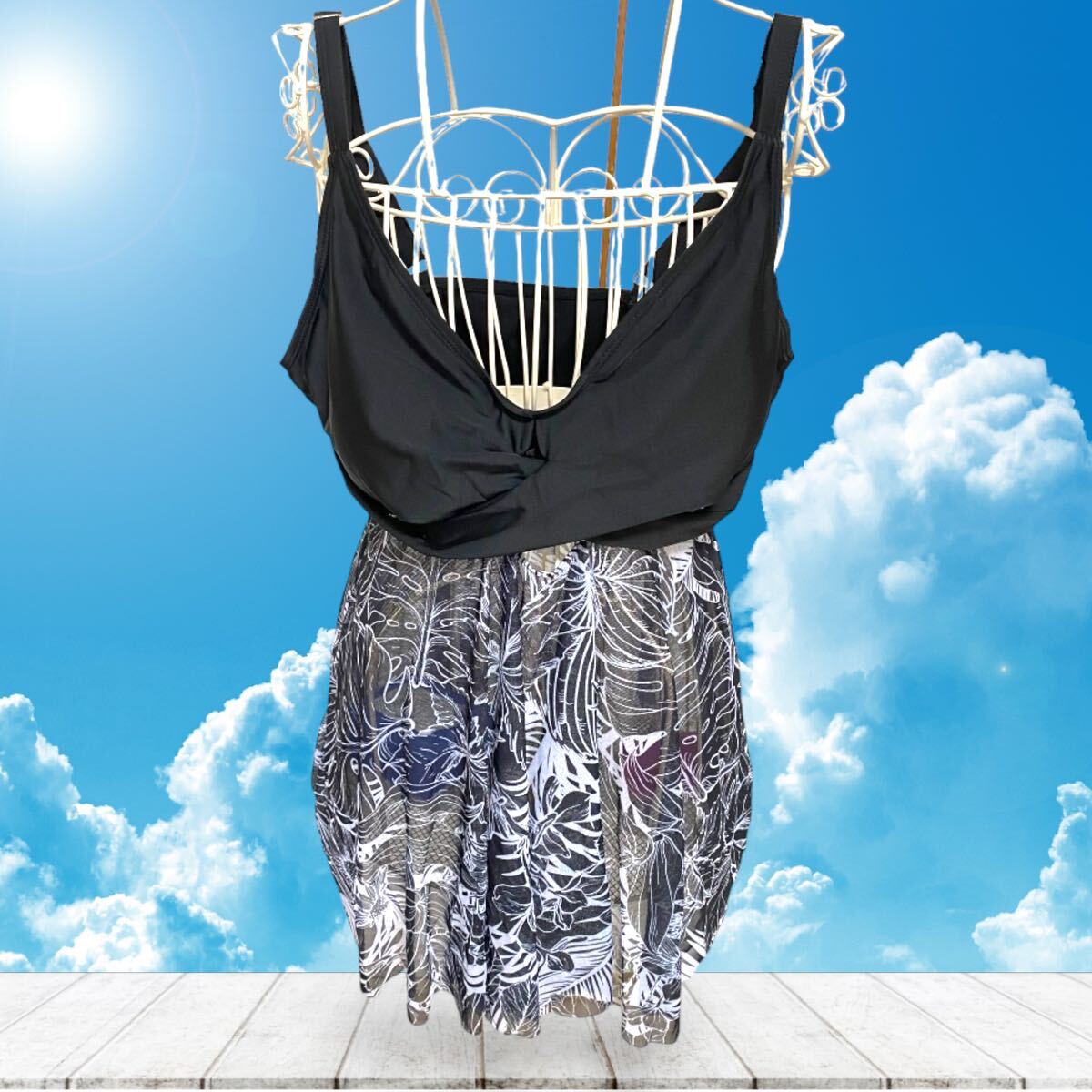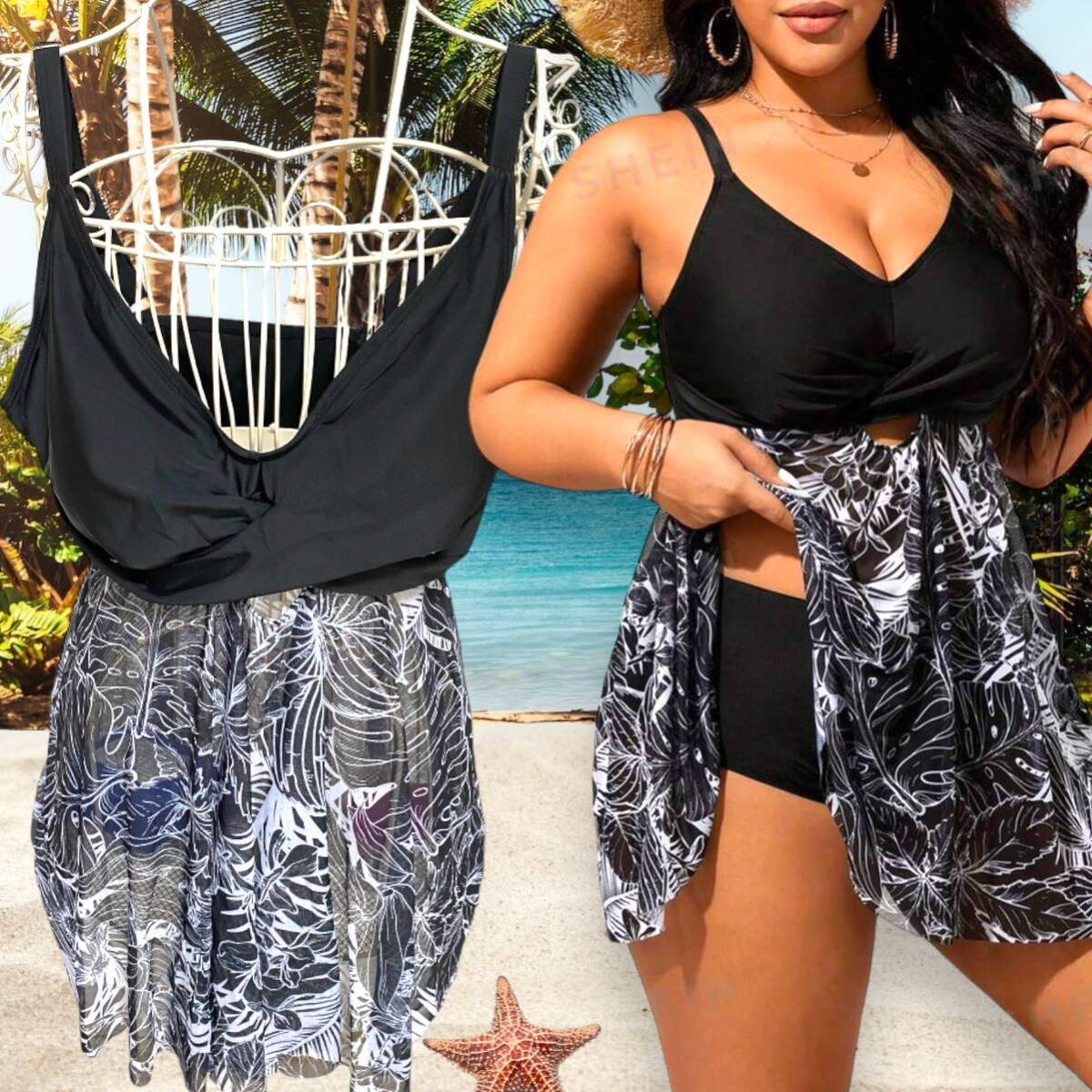 Swim Vcay プラスサイズ ランダムプリント ボディコン 2ピース水着セット 1X L
