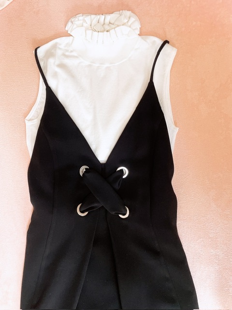 首元のダブルフリルがとっても可愛いノースリーブトップス(^^)☆合わせているワンピースもルシェルブルーです、出品中ですのでよろしければご覧ください♪♪