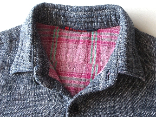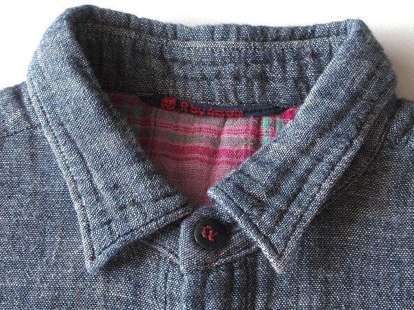 45rpm R刺繍 Rロゴ釦 コットン 裏チェック ダブルガーゼ シャツ ブラウス 3 インディゴ 日本製 Umii908 Badou-R