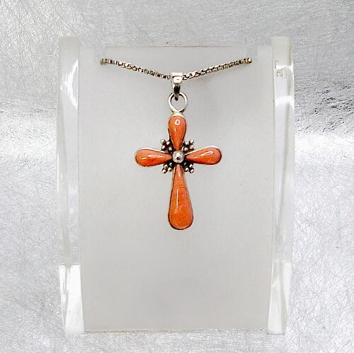 説明 | シルバー925製のクロス(十字)デザインのトップです。 クロス部分にはインカローズがはめ込んである 1点物のトップになります。。 チェーンは撮影用のサンプル品で付属いたしません。 「クロスのモチーフは、縦と横のラインが天と地を表し、