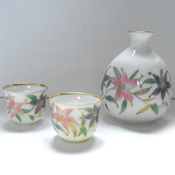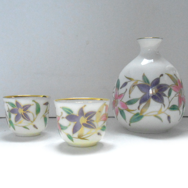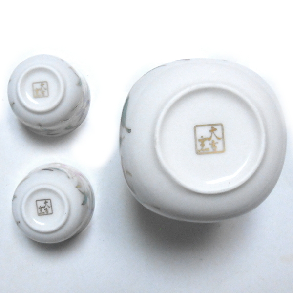 ご覧いただきありがとうございます。当商品は、大吉窯 花文様 徳利 盃 セットです。大きさは、徳利が直径約7.7cm×高さ約10.2cm。底径が約4.6cm。盃が直径約5.0cm×高さ約3.9cm。底径が約2.5cmです。070506R