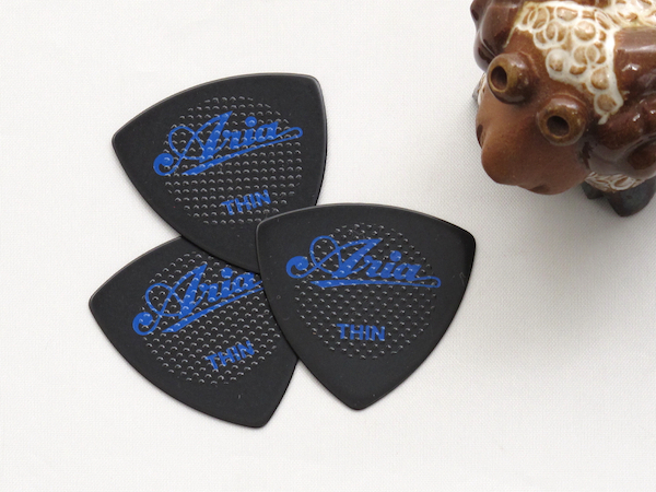 [新品・追跡便] Aria ギターピック3枚 ラバーグリップ/トライアングルシェイプ/セルロース製/THIN 0.50mm 黒 日本製 MADE IN JAPAN.
