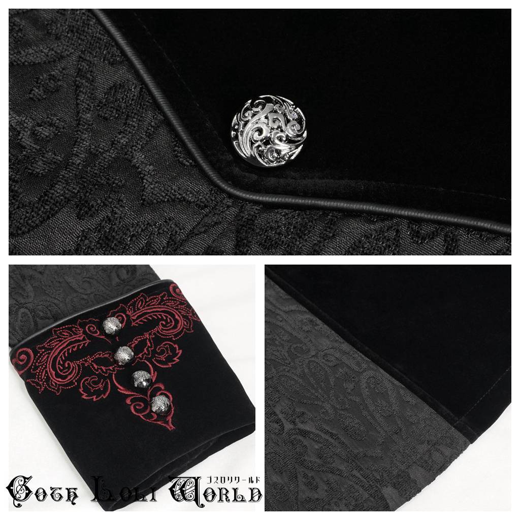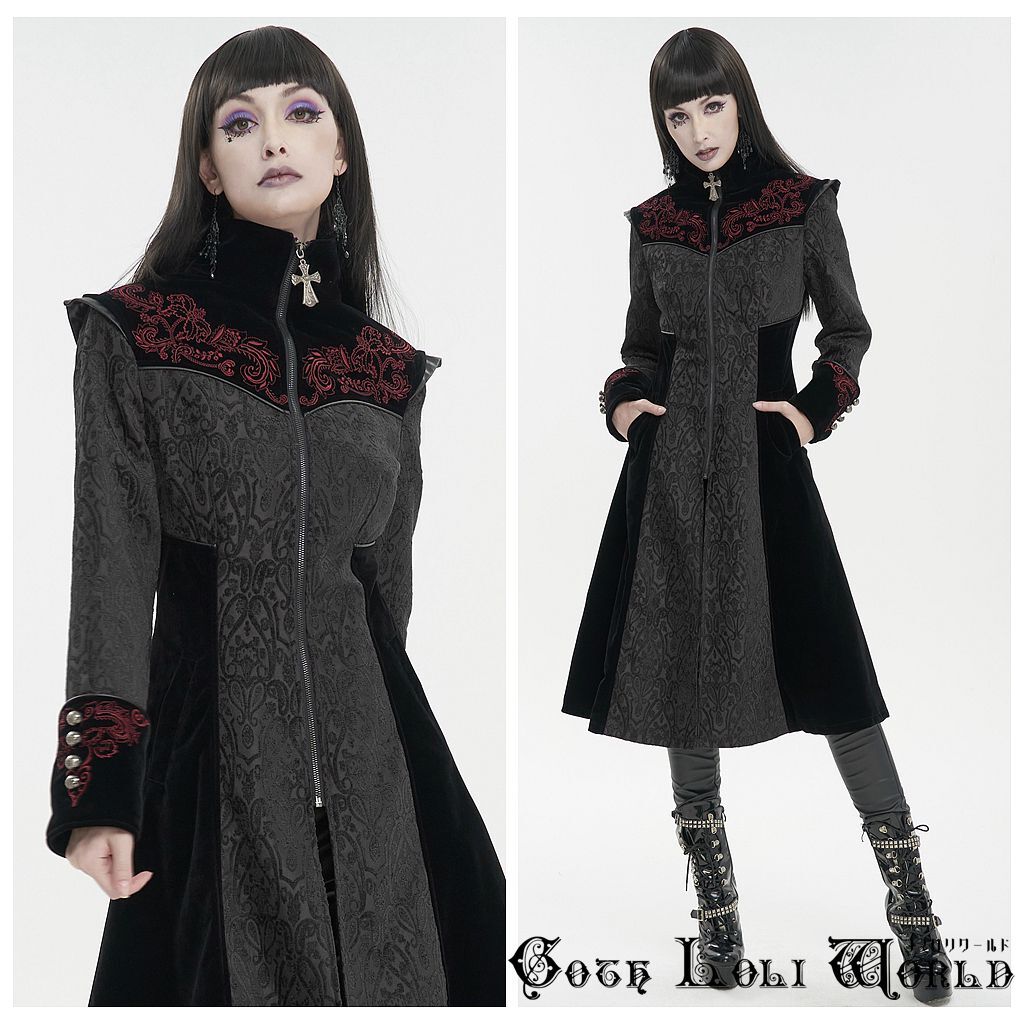 CT20501-L エンブロイダリースタンドカラーコート ブラック ゴスロリワールド ゴシック パンク ロック ロリィタ ビジュアル系 V系