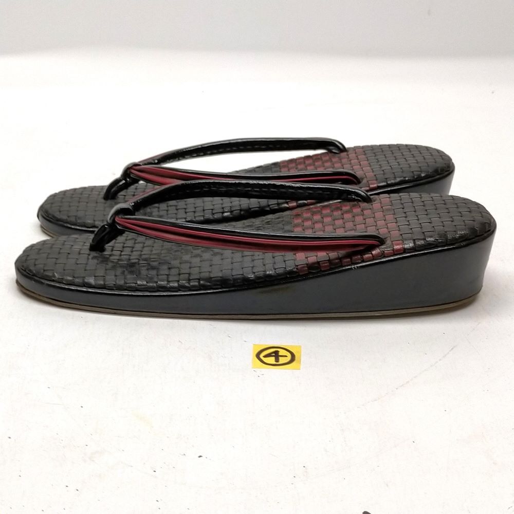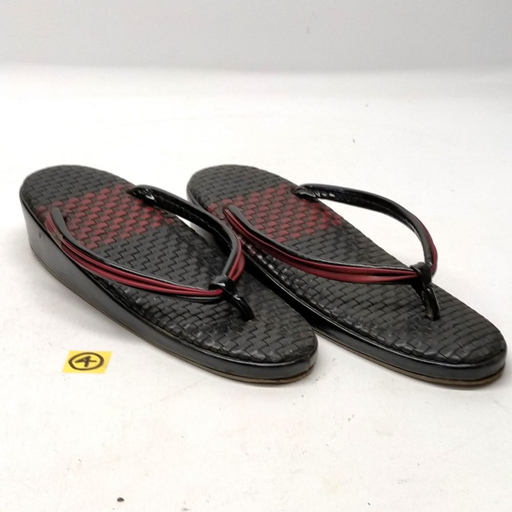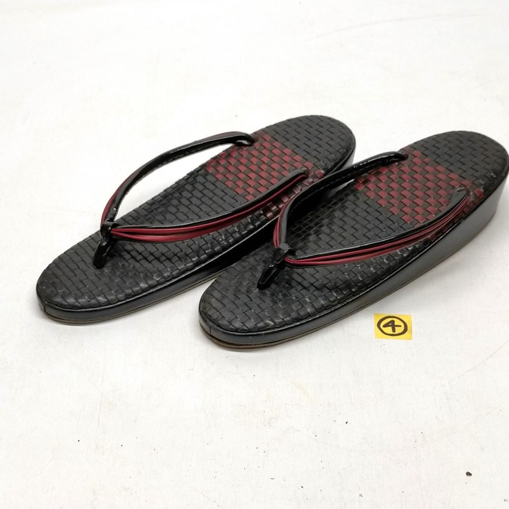 ④ 草履 赤 黒 和装 着物 小物 レディース ぞうり 履物 女性用 中古