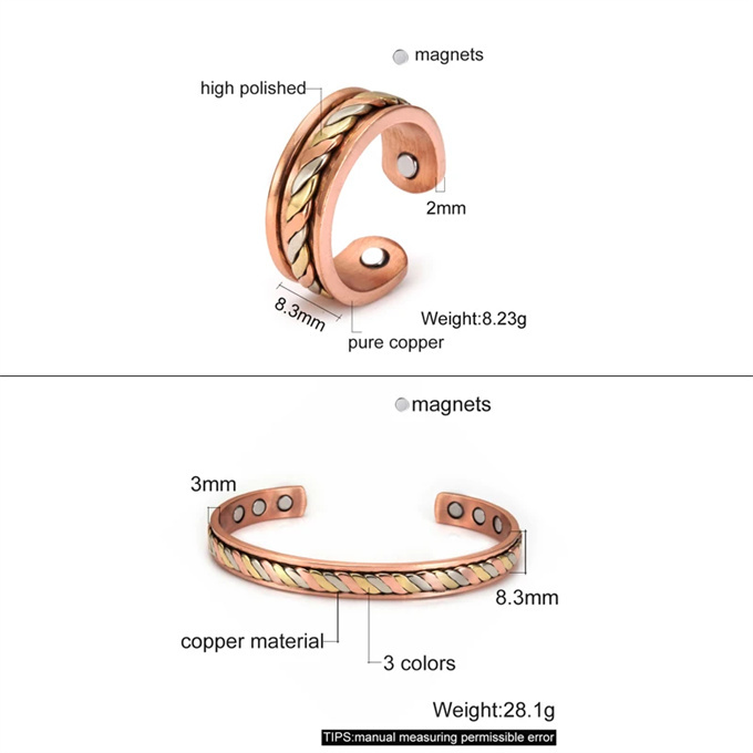 純銅製ジュエリー 純銅磁気ブレスレット エネルギーマグネット付き 磁気ブレスレット