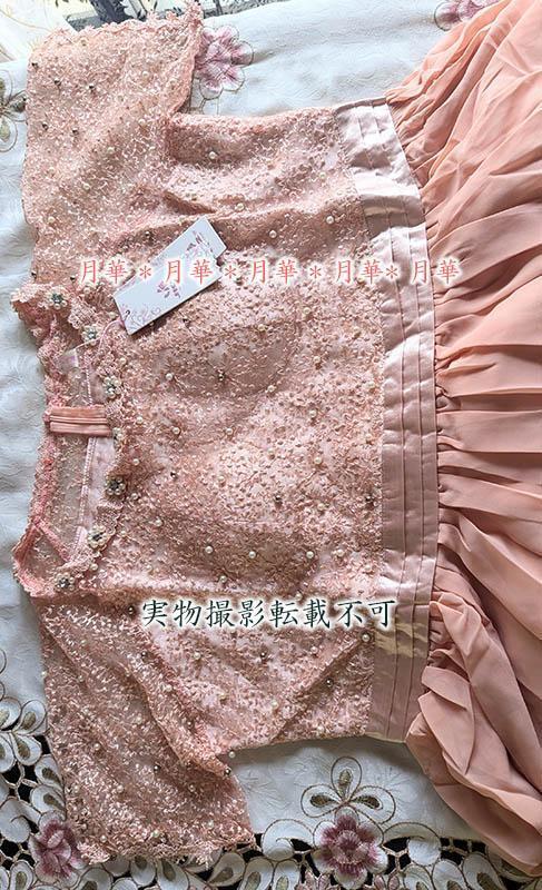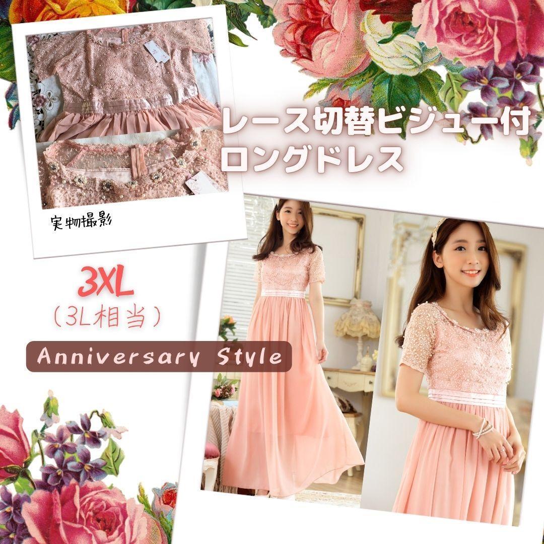 繊細なレース、柔らかいシフォン素材に胸元や袖に散らしたビジューが大人可愛い切替ロングドレス