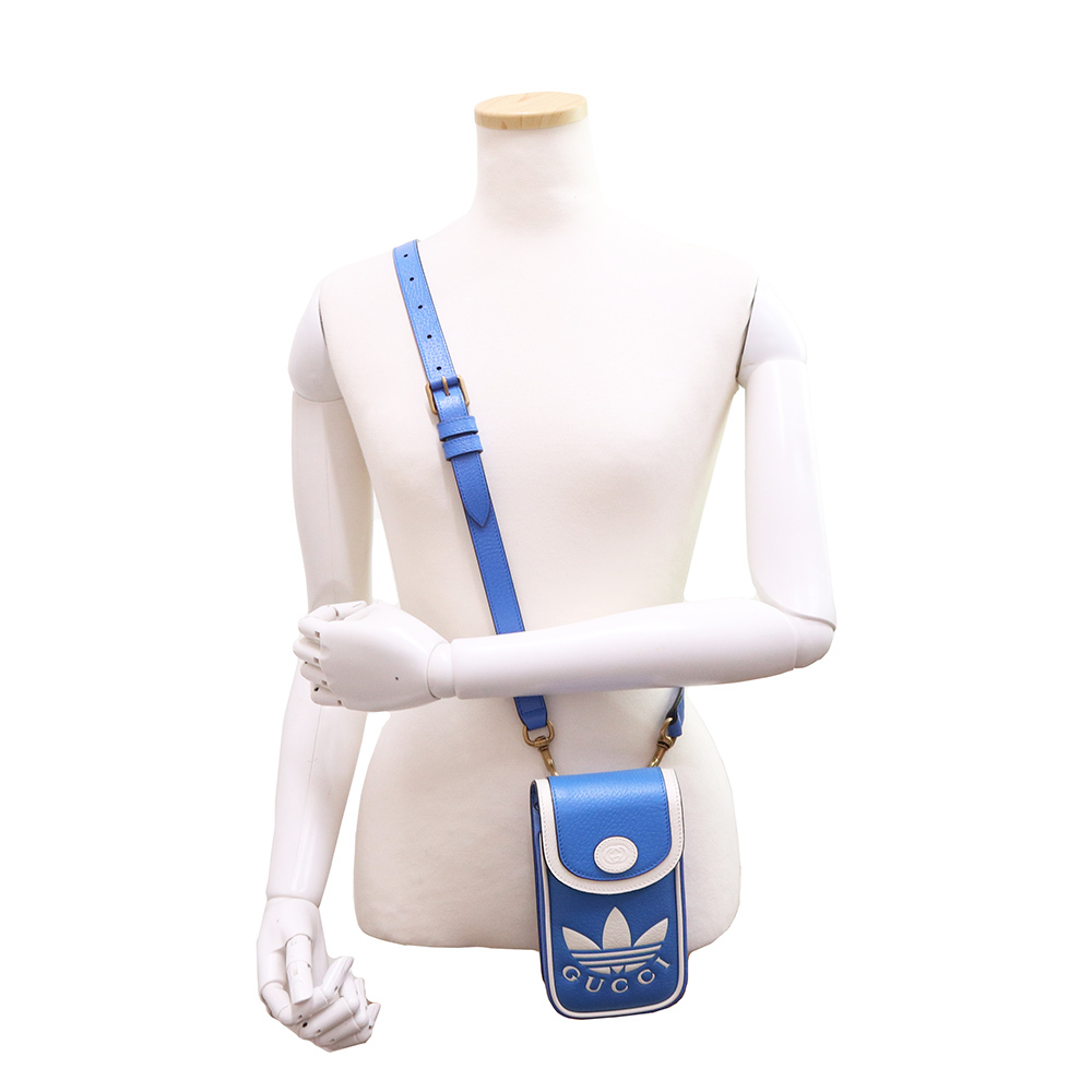 (新品・未使用品)グッチ GUCCI アディダス adidas Gucci コラボ トレフォイル ミニ ショルダーバッグ 斜め掛け 青 白 721794