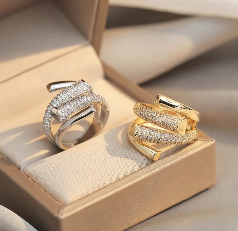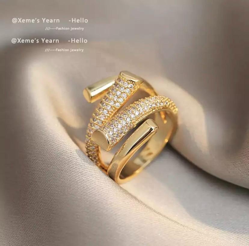 605★新品未使用★レディース ゴールドリング czダイヤモンド ジルコン 韓国 ジュエリー アクセサリー ストーン 結婚式 ドレス カジュアル