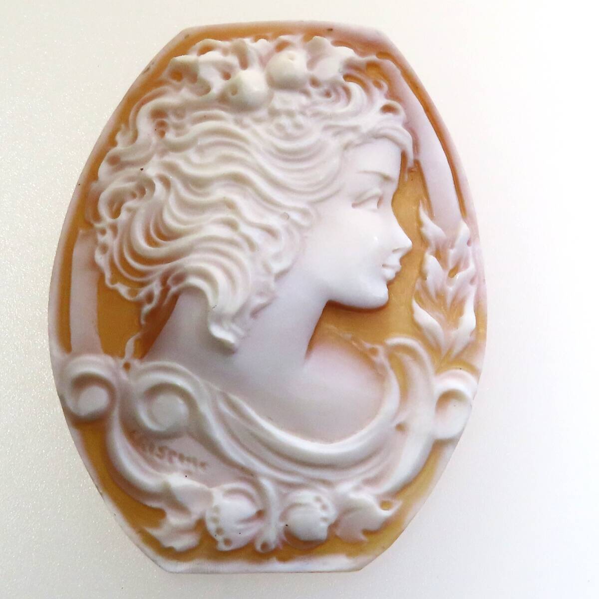 作家物 天然シェルカメオ  クリスピーノ サイン入り 60㎜