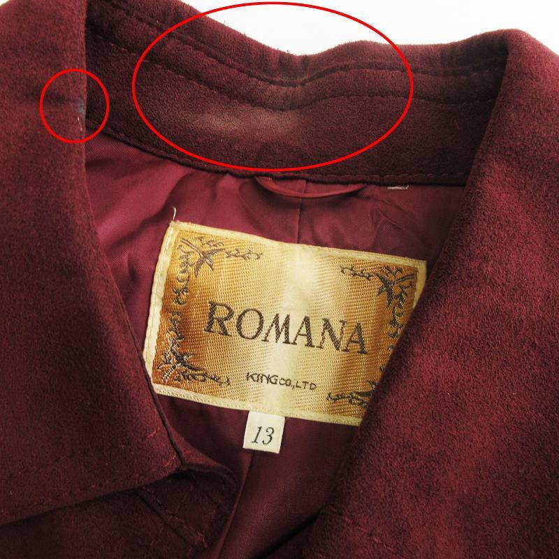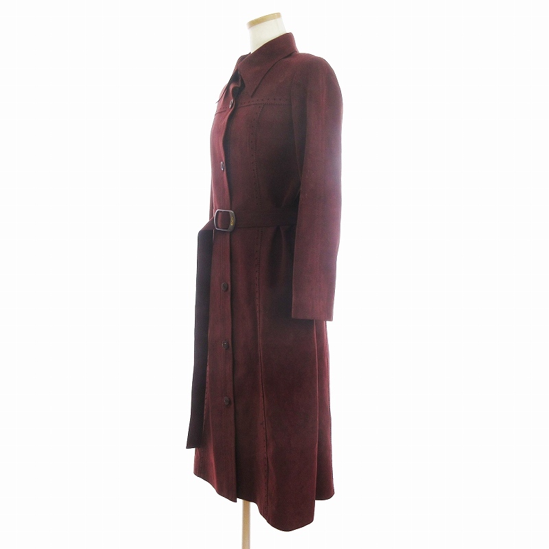 ROMANA ステンカラー ロングコート フェイクスエード ベルト付き ワインレッド系 13 XL相当 レディース