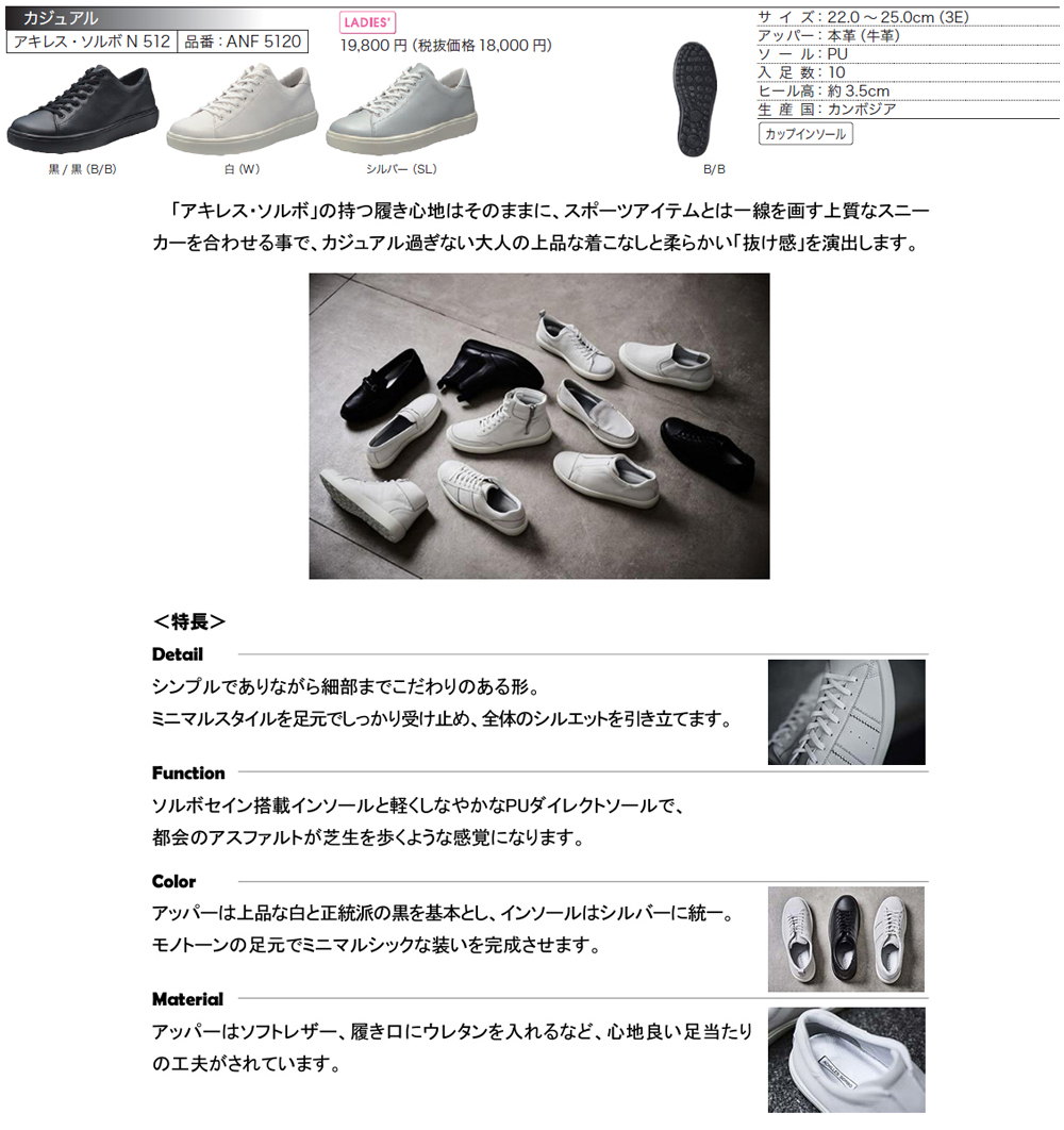 訳アリ!! ANF5120 SL 22.5cm アキレス ソルボ レディース ウォーキング スニーカー シューズ 3E 本革 レザー ACHILLES SORBO 婦人 080301