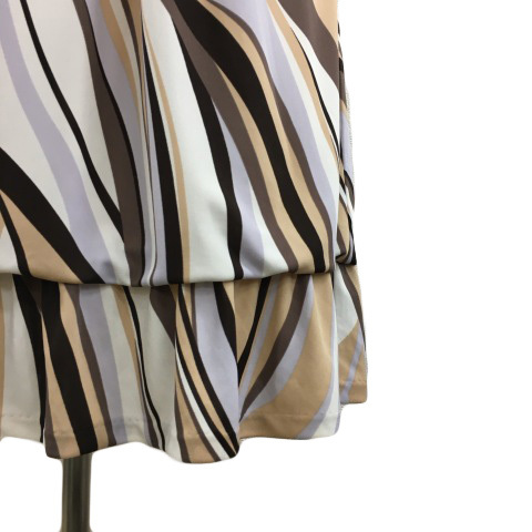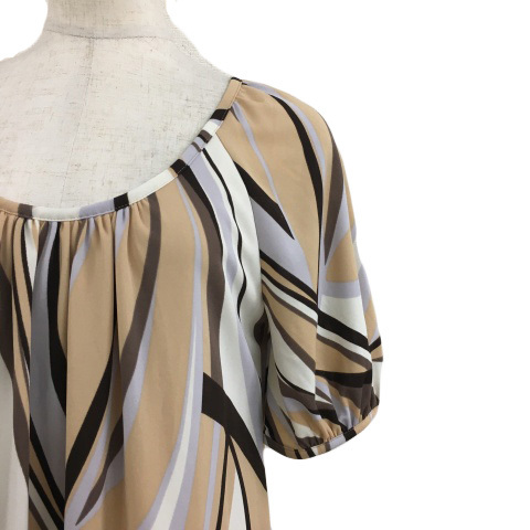 ルーニィ LOUNIE ワンピース Aライン ミニ 総柄 タック ティアード 半袖 38 茶 ベージュ ブラウン レディース