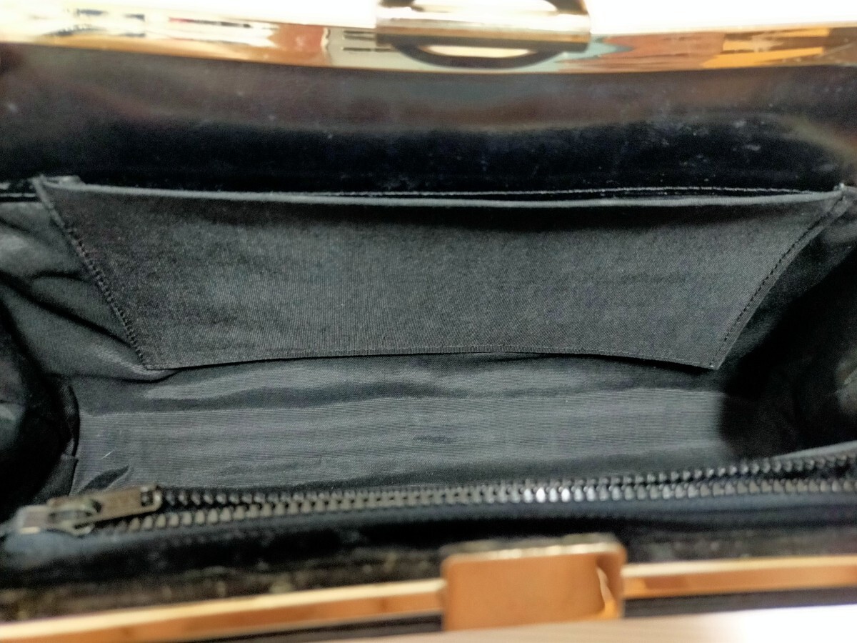 ご覧いただき誠にありがとうございます ◆必ず注意事項をよくお読みいただき、御理解いただき御入札くださいませ。 ご入札に関しては、注意事項に御同意いただいたと判断いたします。 古い旧家の整理で出てきたものです 住んでいた方の年齢からして昭和もしくは平成の初期かと推察されます。 シンプルなハンドバッグ位のサイズ感でブラックベースで合皮にエナメル風の艶のあるコーティングがされております ストラップはチェーンを編み上げて紐のように仕上げた凝ったデザインです(ストラップは固定式となっております) 中にはポケットが2箇所ございます。 恐らく合皮であるかと思いますが製品表示等がございませんので 組成等は不明でございます 今となってはレトロな雰囲気があって味のあるデザインです サイズ:縦約16cm、横約29cm、マチ約6cm、 ストラップ長さ約69cm(素人採寸になりますので若干の誤差はご容赦くださいませ) 状態:使用感はございます。経年保管による素材の劣化や擦れ・汚れはございます 経年経過・自宅保管品になります。 *経年経過品につきましては、未使用品・ユーズドに関わらず、経年による素材の劣化・破損が起こる可能性がございます。商品の状態に強いこだわりのある方はご入札をお控え下さませ。 この様なヴィンテージ品のリスクをご理解いただいた上でご検討くださいませ あくまで個人取引になりますので、ノンクレームノンリターンでお願いいたします。 必ず下記注意事項をよくお読みいただき、御理解いただき御入札くださいませ。 |