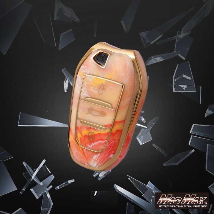 プジョー専用 大理石調 TYPE A TPUスマートキーケース ピンク。