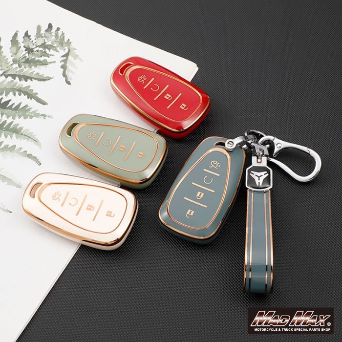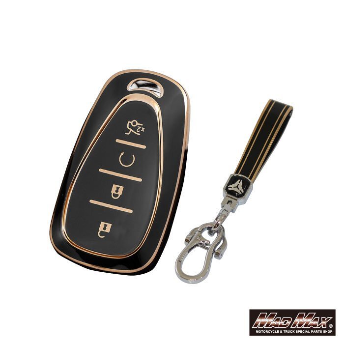 シボレー専用 ゴールドライン TYPE B 4ボタン式 TPUソフト スマートキーケース ブラック。