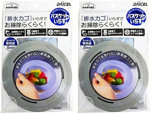 「ダイセルミライズ【2個セット】バスケットいらず 本体N (旧:ダイセルファインケム )」▼4905803915017▼(商品説明)・ 2個セット ・・Size:2個セット・商品サイズ1個あたり(約):幅260x奥行125x厚み50mm・商品重量(約):53g×2個・本体:外径150mm・専用袋サイズ:150x140mm説明 【2個セット】ダイセルファインケム バスケットいらず 本体N サイズ:本体リング:外径150mm、専用袋:150×140mm 材質:本体:ポリプロピレン、専用袋本体:ポリエステル、専用袋口ゴム部:ポリウレタン 耐熱温度:120℃(専用袋) 耐冷温度:-30℃(専用袋) 本体重量:53g 生産国:中国 ●口径12.6cm?15cmまでの排水口に対応します。 ●リングだけなのでお掃除ラクラク! ●専用袋は2重底で目の細かいストッキングタイプで、ゴミをしっかりキャッチします。 ●サッと水切れし、ヌメリがつきにくく清潔です。 ●専用袋10枚入。