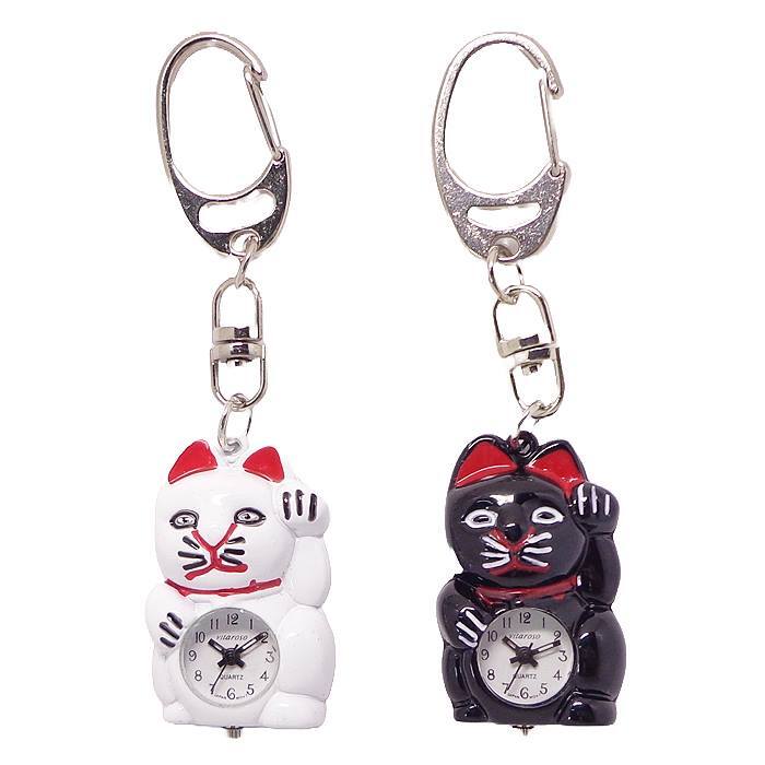 | 持ち運びに便利なバッグチャーム懐中時計です♪ 「福を招く」「商売〓盛」との縁起物と喜ばれる「招き猫」の形をした時計です♪ バッグに引っ掛けたり、キーホルダーとしても、様々なシーンにも、ご使用できます♪ |