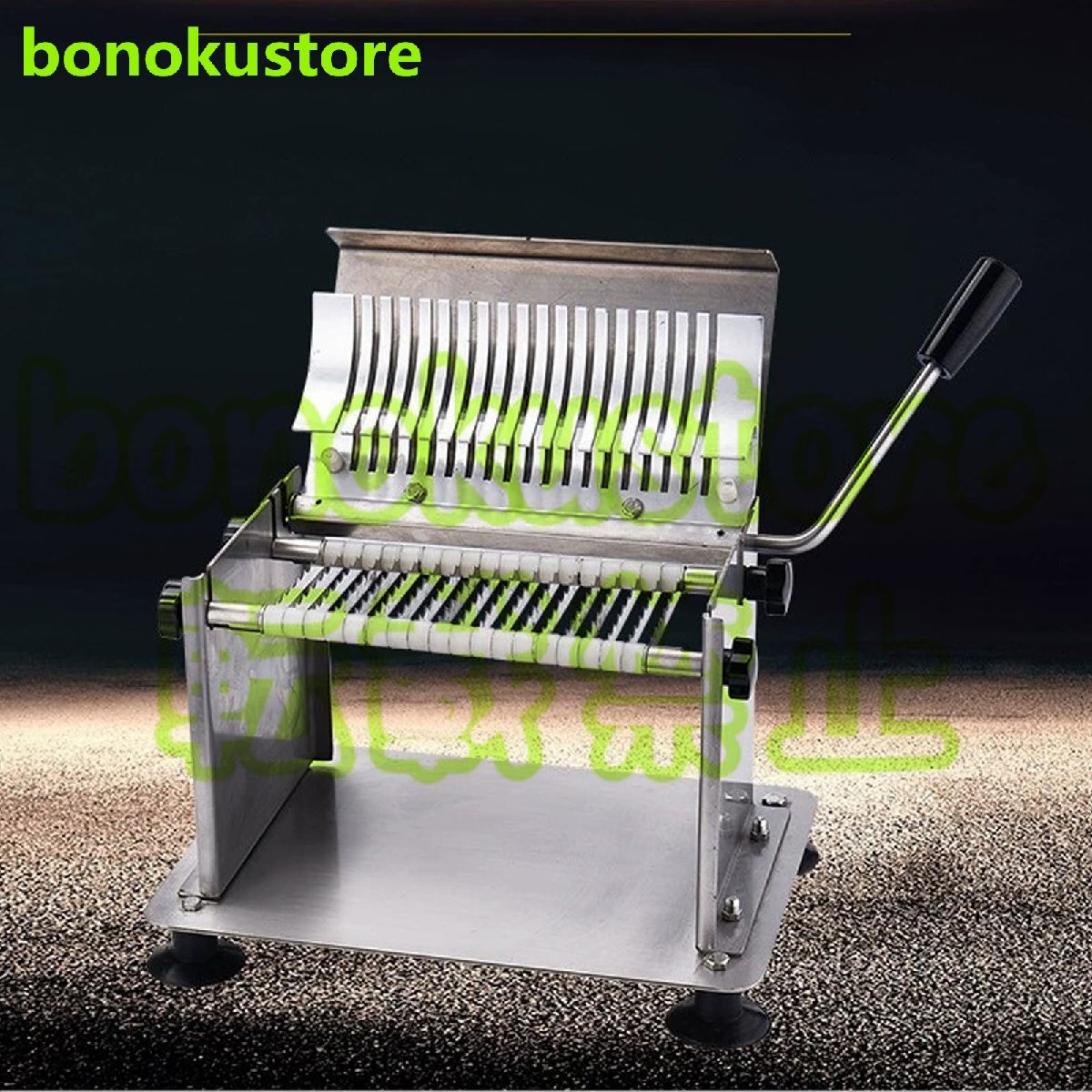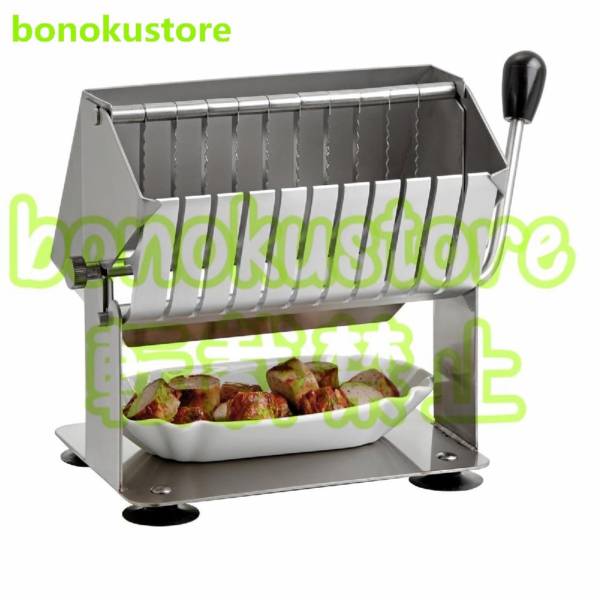 【多用途かつ正確な切断】鋸歯状のエッジを備えた10枚の非常に鋭い刃を備えたミートカッターマシンは、長さ210 mmまでのソーセージを均等なサイズに簡単にスライスします。滑り止め付きの吸引脚は優れた安定性を提供し、安全で正確な切断体験を可能にします。