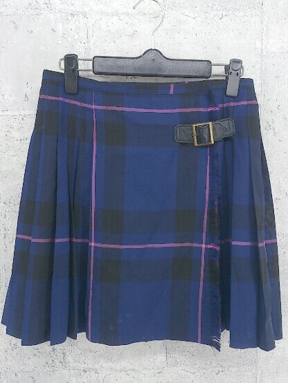 ◇ MACPHEE TOMORROWLAND トゥモローランド ミニ プリーツ ラップ 巻き スカート 36 ブルー ピンク ブラック *