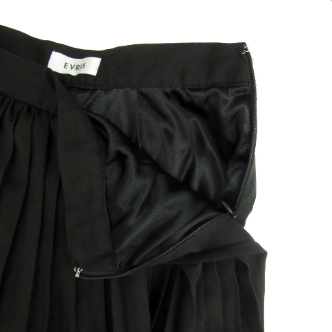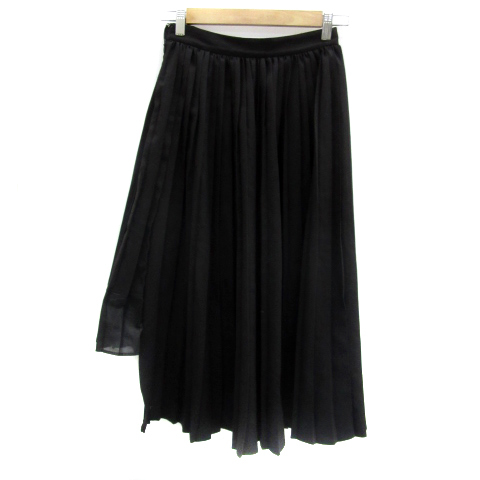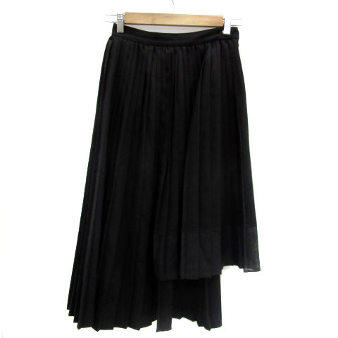 エヴリス EVRIS プリーツスカート ロング丈 無地 裾アシンメトリー S 黒 ブラック /YS31 レディース