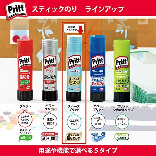 「プラス スティックのり プリット スムーズプリット レギュラーサイズ 5本セット NS-721-5P / 29-716」▼4977564650803▼(商品説明)なめらかな塗りごこちタイプ:5本セット・水色 レギュラー NS-721-5P / 29-716・・Size:レギュラーStyle:なめらかな塗りごこちタイプ:5本セット・プラスは2017年1月1日より、「貼る」の総合ブランドとして『Pritt(プリット)』を展開します・≪Pritt(プリット)≫スティックのり(スムーズプリット/レギュラーサイズ) 5本セット・【サイズ(1本分)】直径21×高さ88mm / 重量20g・【内容量(1本分)】約10g、【のり径】約16mm、【のり主成分】PVP・材質:70%以上再生樹脂(本体容器・キャップ・中軸・つまみ=70%再生PP、中皿=100%再生PP)説明 世界の「Pritt(プリット)」ブランドのスティックのり なめらかな使いごこちで、ムラなく塗れる。仕上がりにこだわりたい人に。 塗ったところを確認できる ブルーののりで、塗った部分が見えるので、塗り残しやはみだしの心配なく確実にのりづけができます。しばらくすると色は消えます。 ムラなく均一に塗れるので、キレイな仕上がり 薄い紙に塗っても、ヨレたりボコボコしたりせず、キレイに貼れます。ノートのプリント貼りにもぴったり。 グリーン購入法適合。
