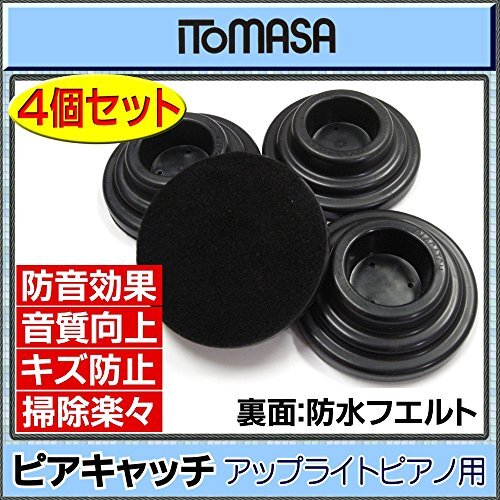 定番の防音インシュレーターをお求めやすく!・裏面カーペット貼仕様 お掃除や移動が楽になります。◆商品名 アップライトピアノ用防音インシュレーター ピアキャッチ ◆ピアノ1台分(4個セット) ◆商品規格 色:黒色 ◆主な仕様 本体直径:約15cm、高さ約5cm、内部直径:約6.5cm 重量:1個につき約650g