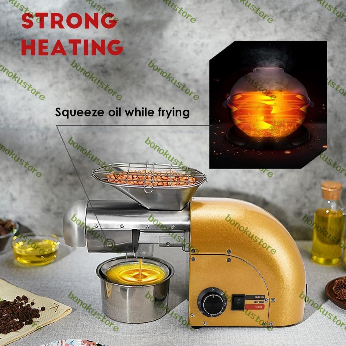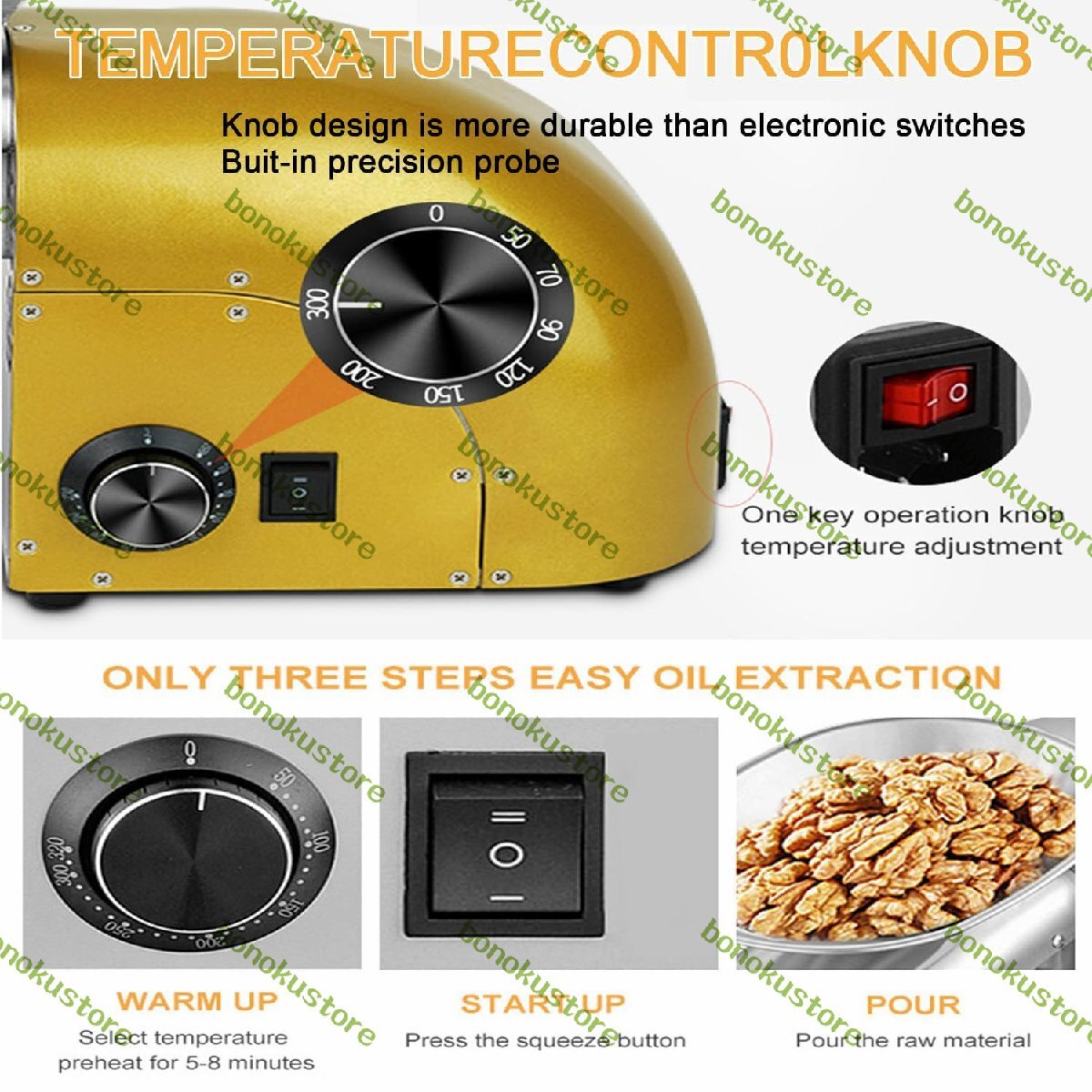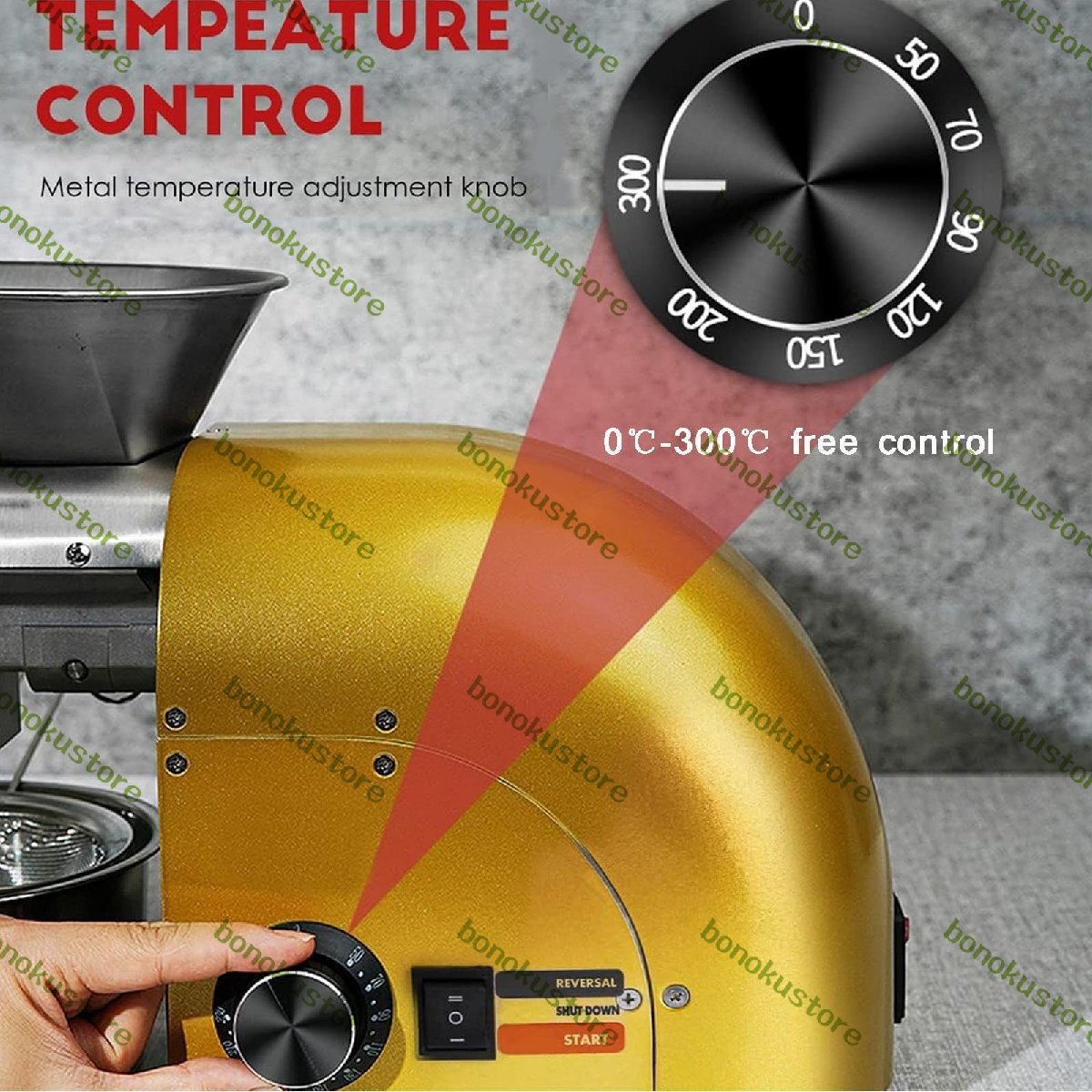 調整可能な温度制御で完璧な結果を実現:当社のオイルプレスは自動温度制御機能を備えており、さまざまな原材料に応じてプレス温度を0℃から300℃まで調整できます。金属製の温度制御ノブにより簡単かつ正確に調整でき、特定の穀粒や種子に最適な条件を提供します。