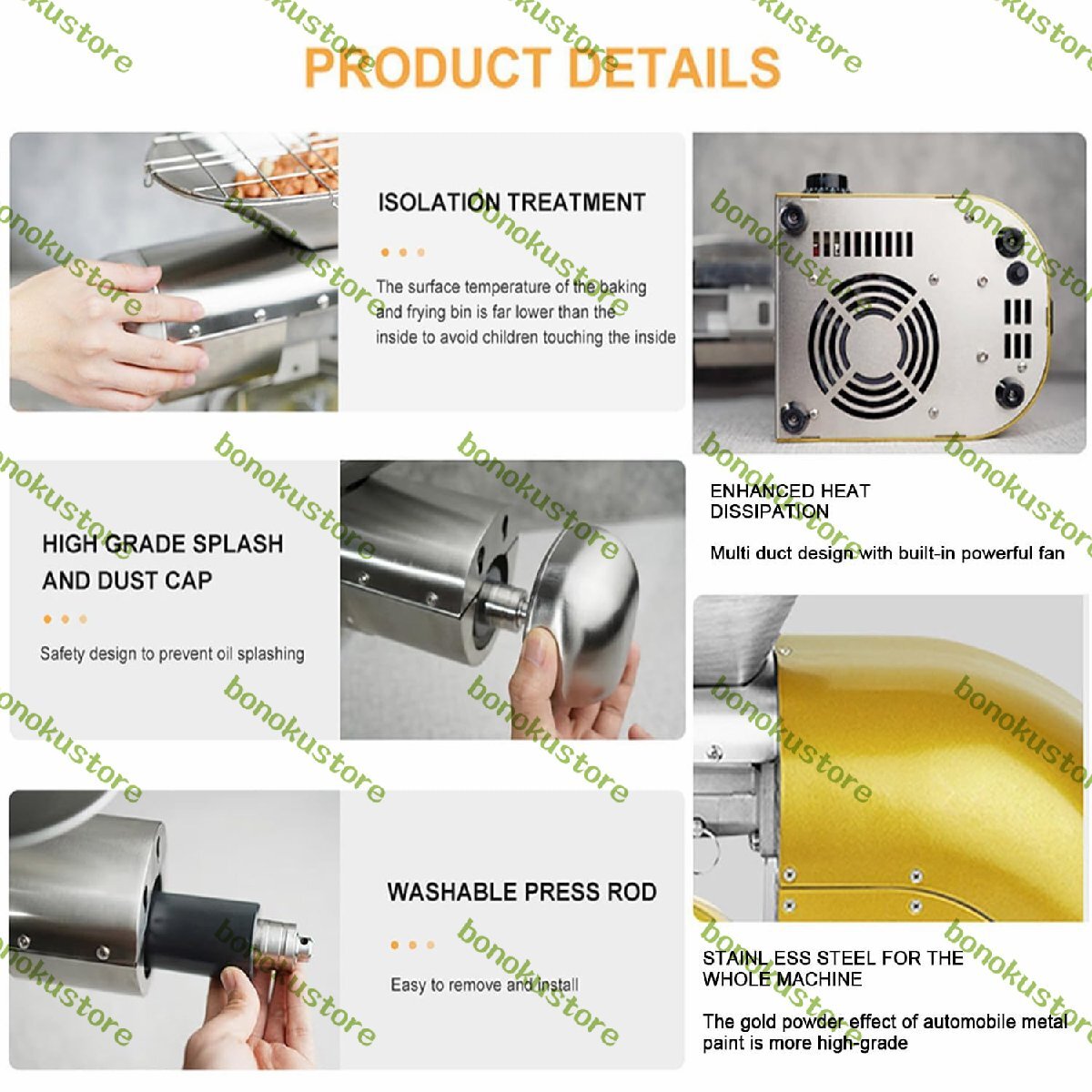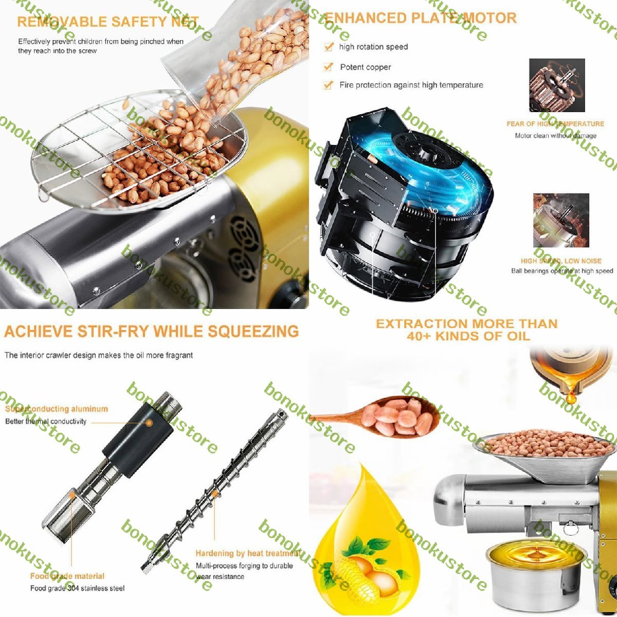 特徴:? 電動オイルプレスで、健康的で栄養価の高い生活をお届けします。- 高品質のステンレス鋼製で、頑丈で耐久性があります。? 付属品が揃っており、取り付けも簡単です。低騒音、長寿命、メンテナンスが簡単。? ピーナッツ、ヒマワリの種、茶葉、ナッツ、オリーブオイル、ココナッツオイル、クルミ粒、ゴマ、茶の実、菜種など、油分を25%以上含むほとんどの油料作物に適しています。? さまざまな材料のプレス要件を満たすさまざまなプレス方法。油収率が高く、さまざまな材料に適しています。仕様:製品: 電動オイルプレス材質: 304 ステンレス鋼電力: 1250W-1800W電圧: 110V/220V油収率: 95%出力: 12-18kg/h搾油方法:コールドプレス/ホットプレス/揚げと圧搾を同時に可能耐久性: 高サイズ: 50x22x29cm重量: 14KGパッケージ内容:1×オイルプレス1 *付属品:プレスロッド/プレスチャンバー、ステンレス鋼オイルカップ、ステンレス鋼スラグスクリーン、ステンレス鋼スラグブロック、ステンレス鋼オイルバッフル、電源コード、手袋、クリーニングブラシ、ガイドロッド、取扱説明書