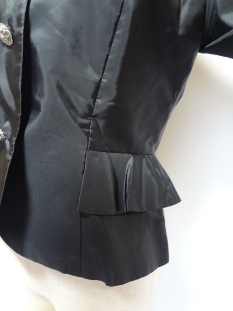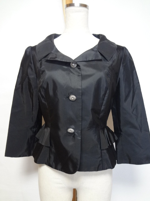 美品*フランコフェラーロ*1*ハリ素材ジャケット*シャカシャカ素材*フリル*デパート*百貨店*ブランド*イトキン*高級*セレブ*マダム*ショート