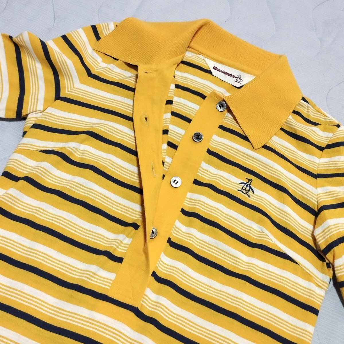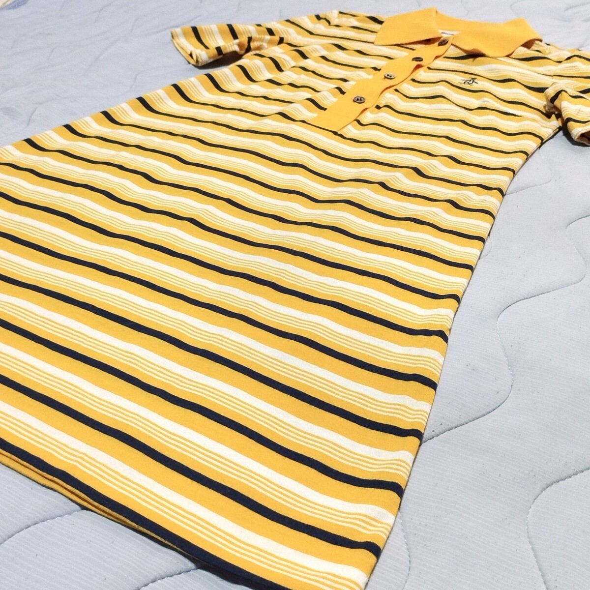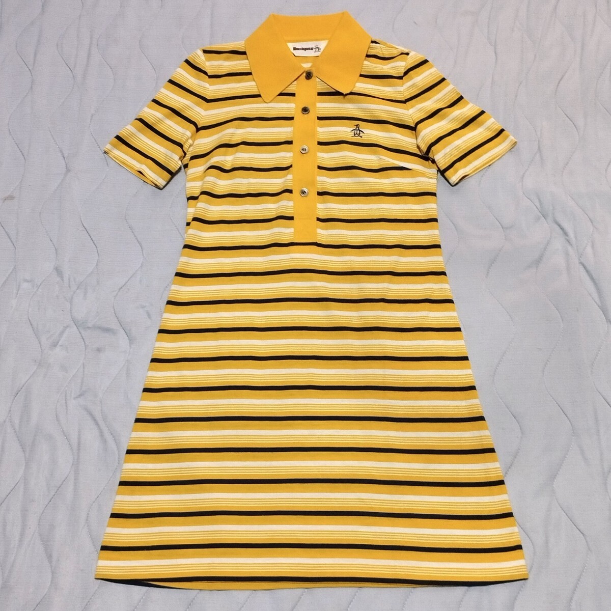 ワンピース ポロシャツ 襟付き 黄色×紺 ペンギンロゴ刺繍